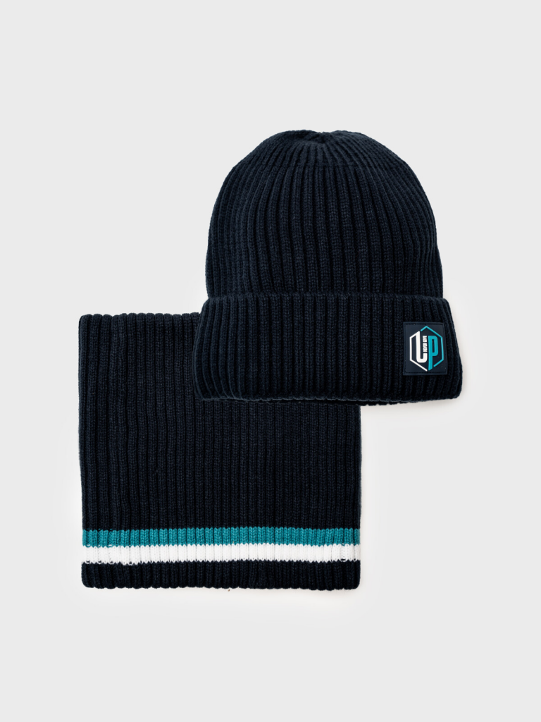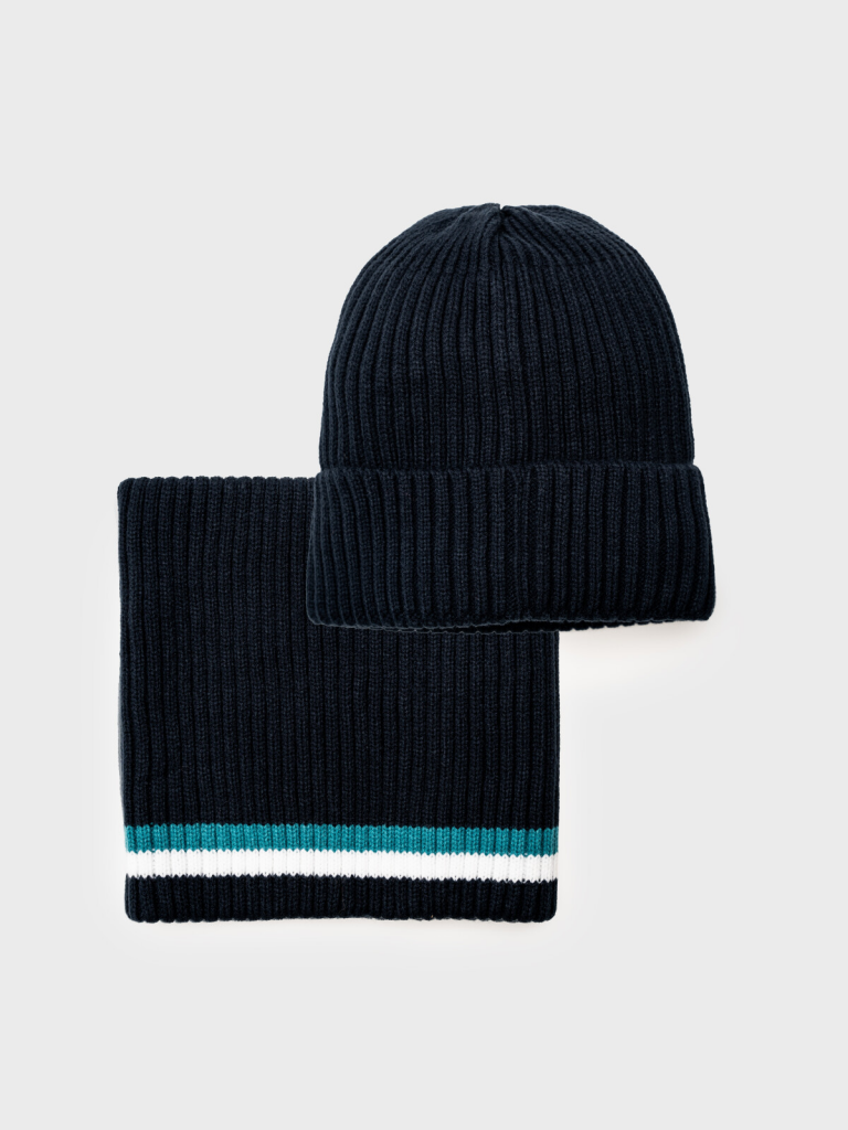 Комплект трикотажный для мальчиков: шапка, снуд тёмно-синий