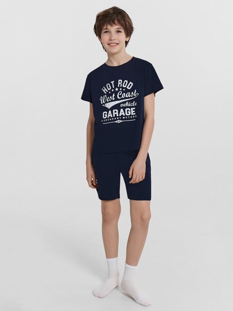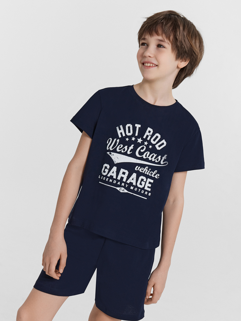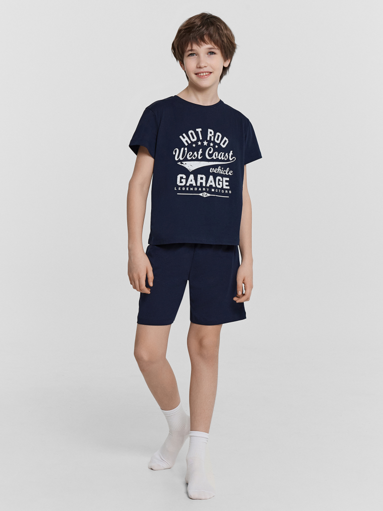 Комплект для мальчиков состоит из футболки и шорт. Футболка прямого силуэта с короткими рукавами. Горловина круглой формы. Шорты длиной до колен. Пояс с эластичной тесьмой внутри. Футболка имеет удобный крой и отличную посадку. Выполнена из 100% хлопка, обеспечивает мягкость и комфорт во время сна. Шорты оснащены эластичным поясом с регулируемым шнурком для комфортной посадки. Пижама идеально подходит ребятам, которые ценят удобство и стильные вещи. Широкий размерный и цветовой ряд. Рекомендуем!