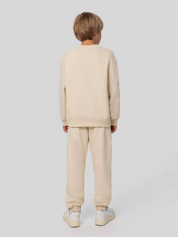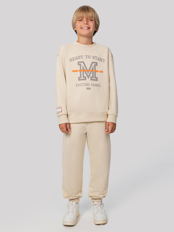 Комплект для мальчиков — практичное и удобное решение для повседневного гардероба, объединяющее комфорт и стиль. Свитшот прямого силуэта со слегка спущенным плечом и округлой горловиной отличается свободной посадкой, обеспечивающей свободу движений. Длинные рукава завершаются манжетами из рибаны, которые мягко фиксируют их на запястьях и сохраняют форму. Брюки выполнены без боковых швов, что делает изделие особенно комфортным при носке. Широкий пояс с внутренней эластичной тесьмой удобно сидит на талии, не создавая давления, а манжеты из рибаны по низу брюк гармонично дополняют образ и удерживают форму. Натуральный хлопок в составе материала приятен к телу и хорошо пропускает воздух, что особенно важно для активного образа жизни. Такой комплект отлично подойдет для школы, прогулок или домашнего отдыха.