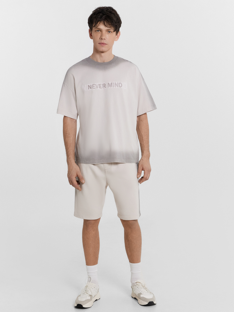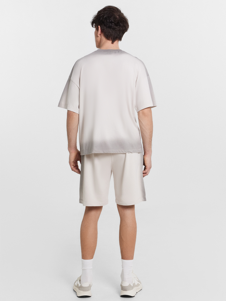 Стильный мужской комплект, состоящий из футболки и шортов. Выполнен из хлопкового полотна с добавлением полиэстера, который увеличивает прочность и долговечность одежды. Футболка силуэта оверсай, длиной до линии бедер. Спущенная линия плеча дарит свободу движений. Шорты прямые и свободные, длиной до колена, с эластичной тесьмой в поясе и удобными боковыми карманами. Регулировать ширину в талии можно с помощью шнурка-завязки. Рекомендуем!