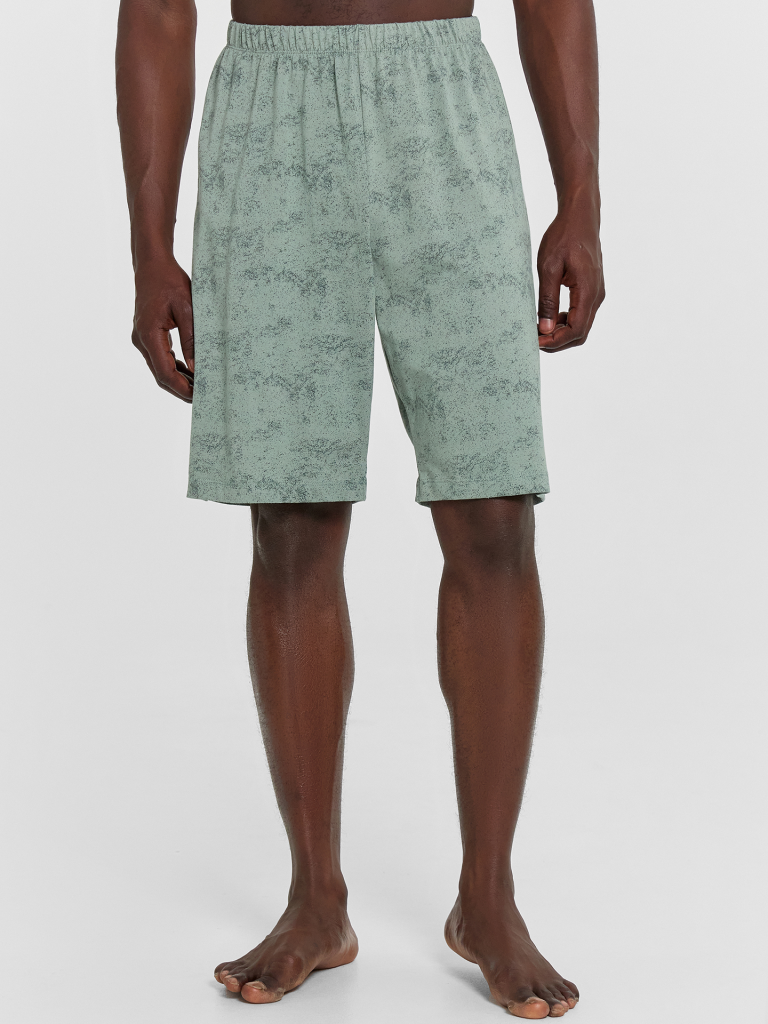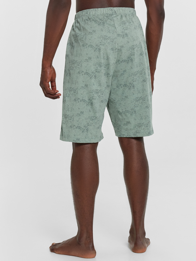 Шорты прямые с боковыми швами. Пояс цельнокроеный с эластичной тесьмой внутри. Нижние срезы обработаны швом вподгиб.