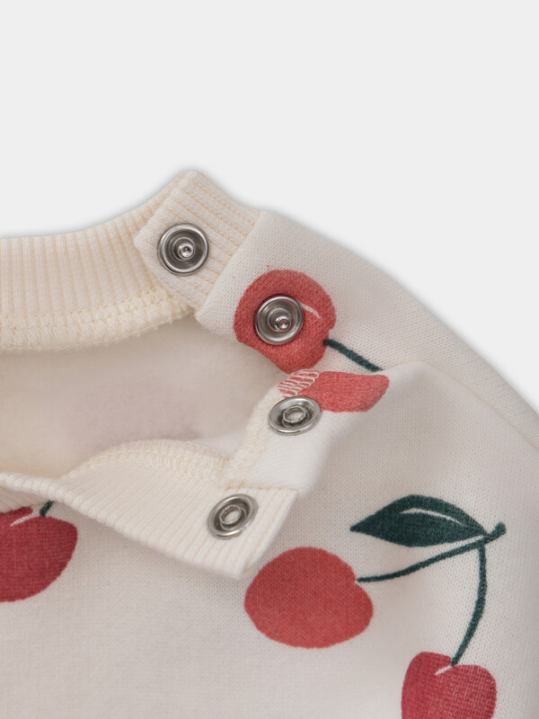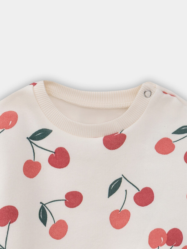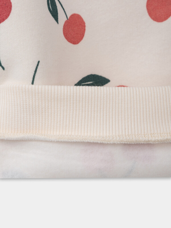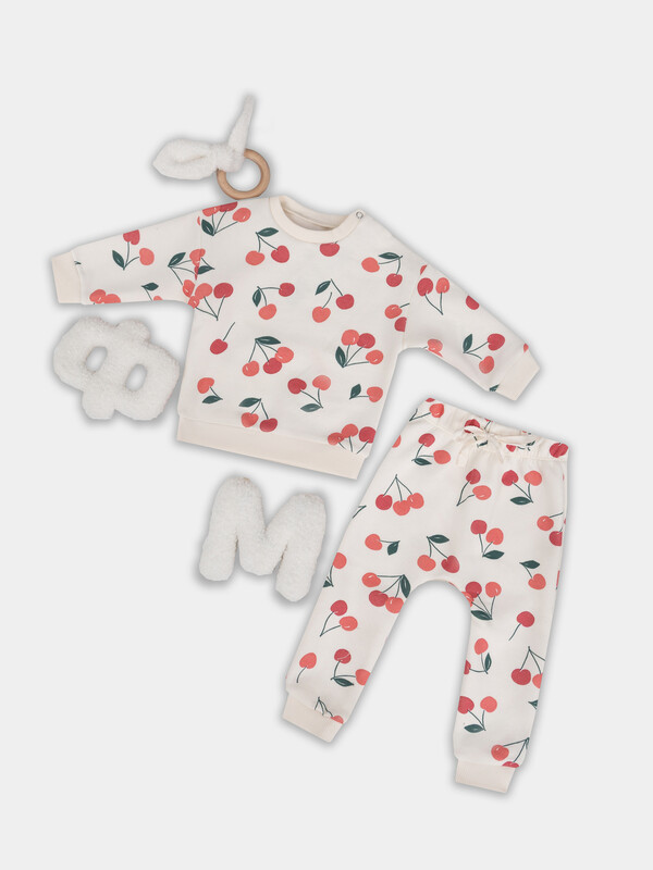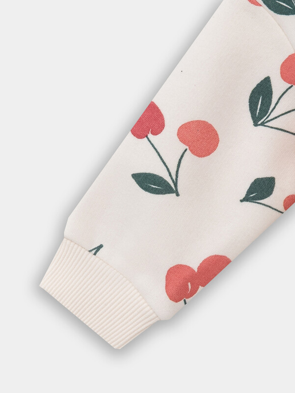 Комплект десткий состоит из кофточки и ползунков и прошит в футере 3-х нитка с начесом. Кофточка свободного силуэта. Спинка и перед цельнокроенные. Рукава втачные, длинные, одношовные. Горловина круглая, окантована бейкой из трикотажной рибаны 2*2 R-6, R22-062.01.360, 96% хлопок;4% эластан, 230 гр, 165 см. На левом плече застежка книппер 9 мм - 2 шт. По низу изделия притачные манжеты из трикотажной рибаны 2*2,R-6,R22-062.01.360, 96% хлопок; 4% эластан, 360 гр/м?, 135 см. Ползунки детские с ластовицей и открытыми ножками. Пояс цельнокроенный, с эл. тесьмой внутри (внутрення резина 40RV), ширина 40 мм. В пояс вставлена ХБ тесьма, ширина 10 мм. По низу изделия притачные манжеты из трикотажной рибаны 2*2 R-6, R22-062.01.360, 96% хлопок; 4% эластан, 360 гр/м?, 135см.