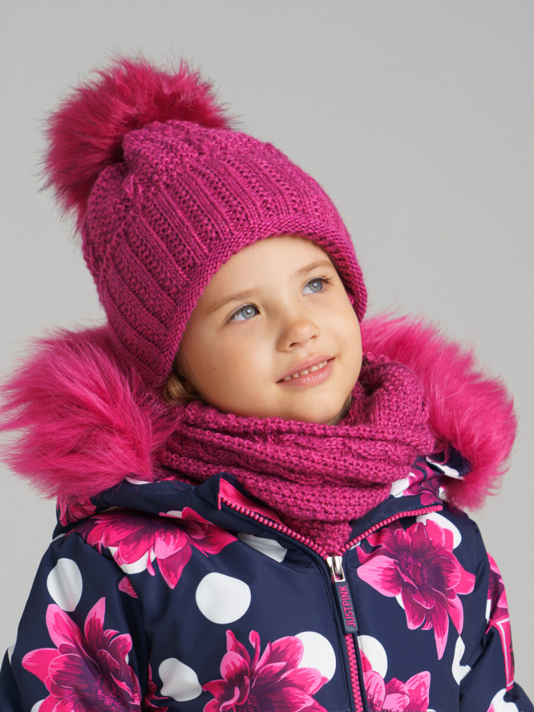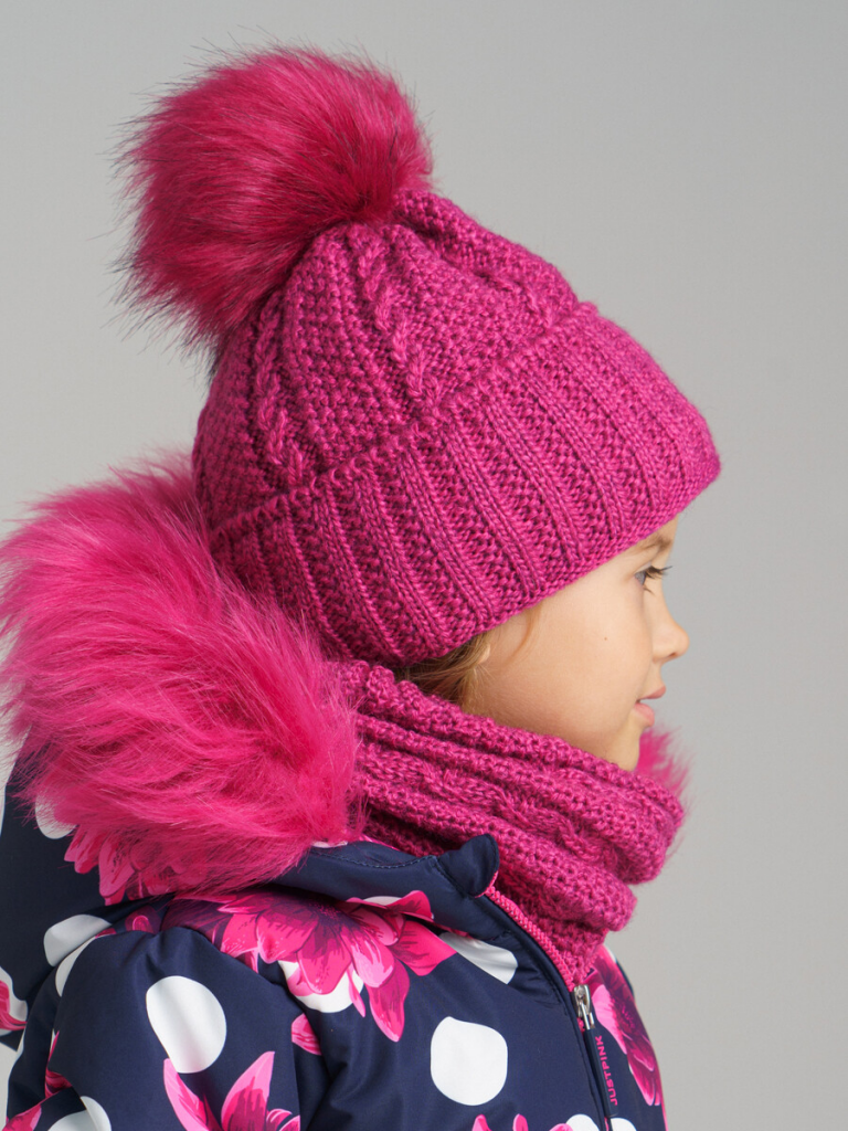 > Комплект вязаный для девочки: шапка, снуд розовый