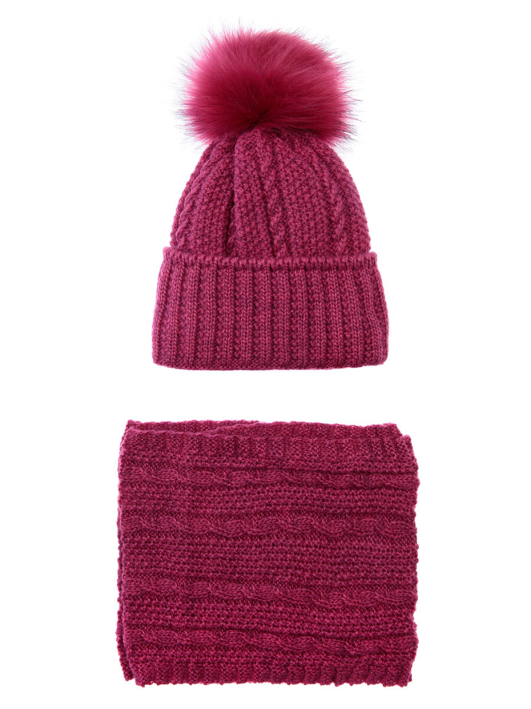 Комплект из вязаного трикотажа: шапка, снуд. Пряжа из акрила: легкая, теплая, гипоаллергенная. Утеплен синтепоном. Подкладка трикотажная. Помпон из искусственного меха, предусмотрена возможность снятия.
