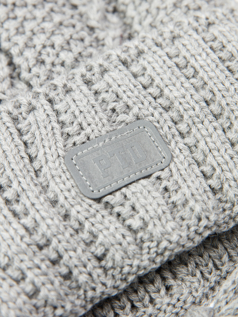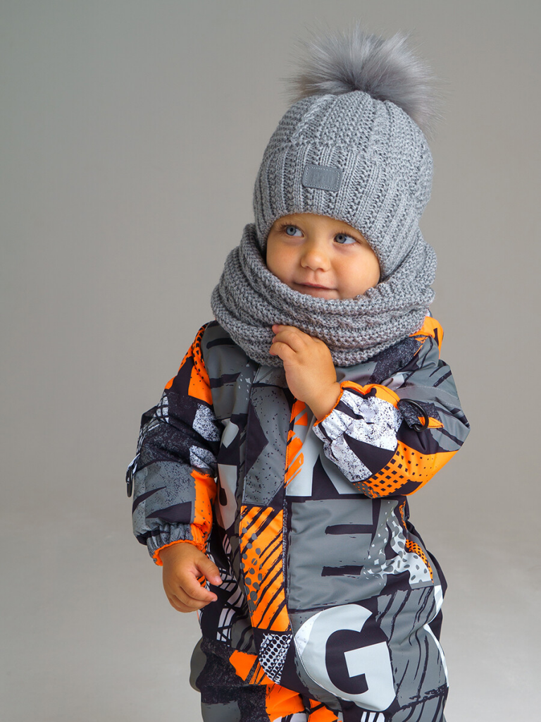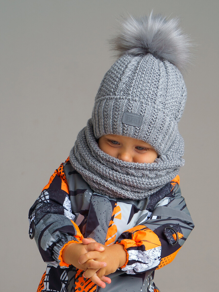 Комплект вязаный для мальчика: шапка, снуд светло-серый