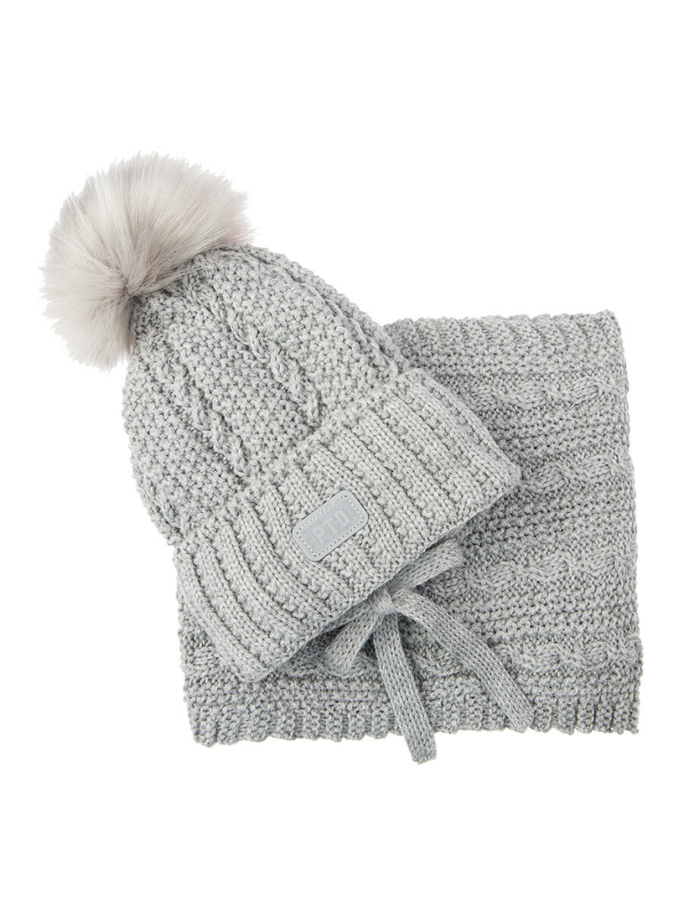 > Комплект вязаный для мальчика: шапка, снуд светло-серый