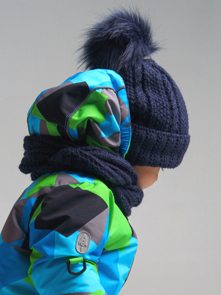 > Комплект вязаный для мальчика: шапка, снуд тёмно-синий