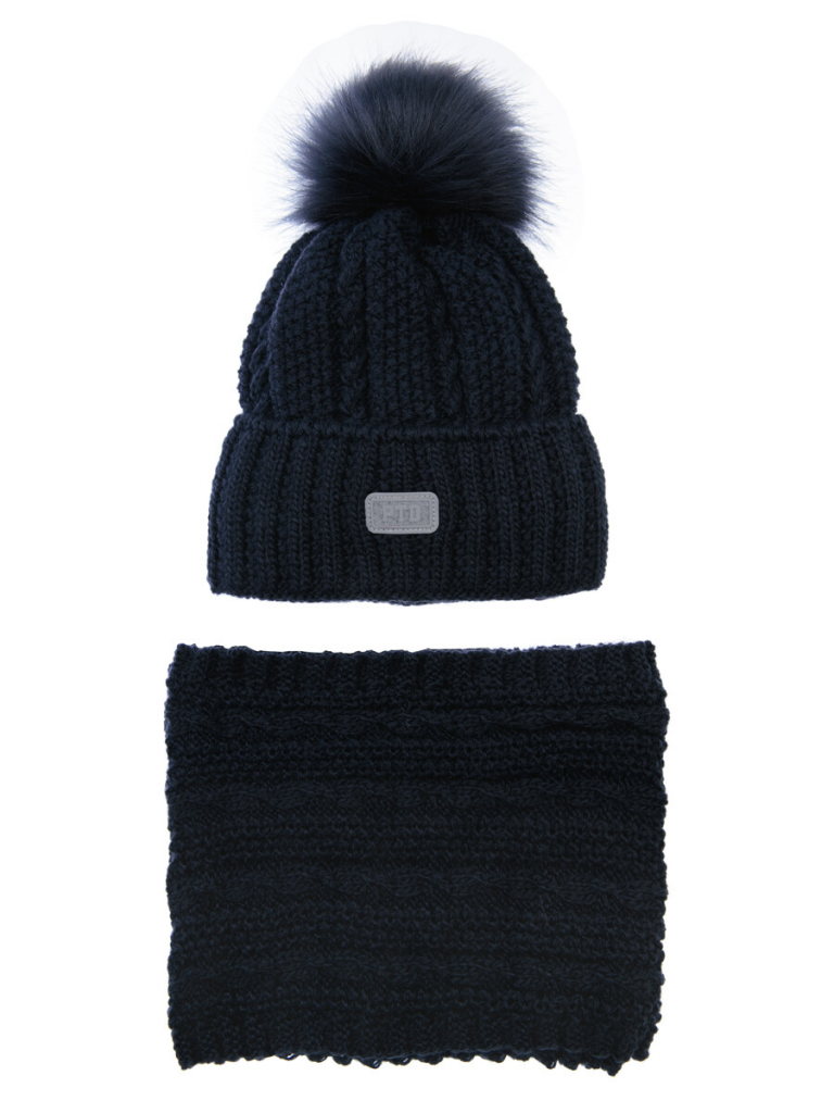 Комплект вязаный для мальчика: шапка, снуд тёмно-синий