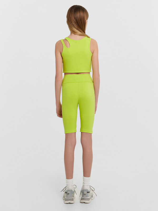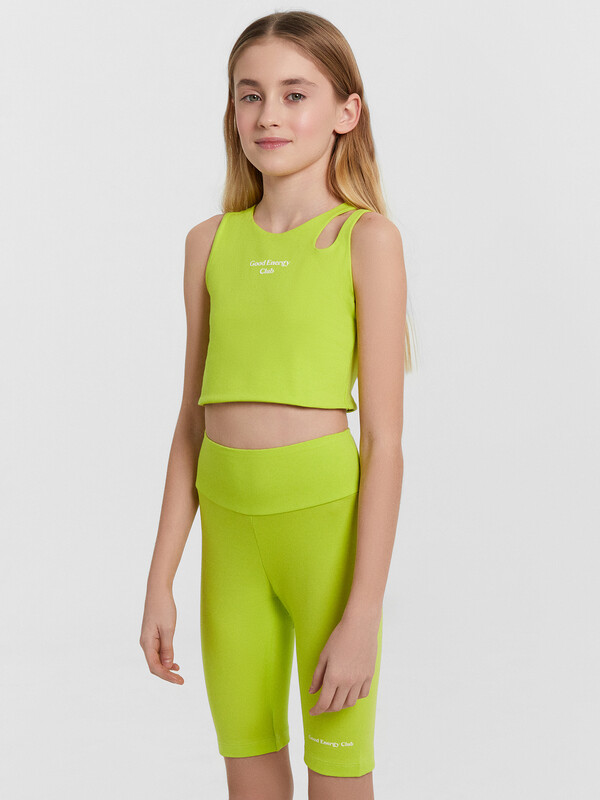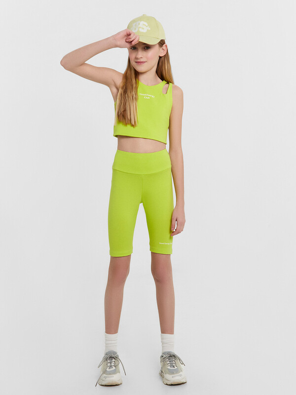 Этот комплект для девочек идеально подходит для занятий спортом! Топ прилегающего кроя с круглой горловиной обеспечивает комфорт и поддержку во время активности. Фигурный вырез на левом плече добавляет стильный и современный акцент, делая образ более интересным. Велосипедки облегающего кроя с эластичным поясом гарантируют надежную посадку и свободу движений, что особенно важно для спортивных занятий. А длина до колена и высокая посадка подарят удобство и уверенность во время тренировок. Изготовленный из мягкого и дышащего материала, этот комплект обеспечивает комфорт и удобство на протяжении всего дня. Он не только функционален, но и выглядит стильно, позволяя юным спортсменкам чувствовать себя уверенно и привлекательно!