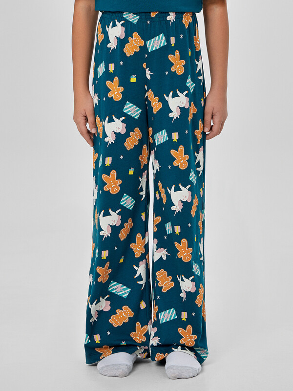 Брюки прямого, свободного силуэта. Пояс цельнокроеный с эластичной тесьмой внутри(внутрення резина 30RV), ширина 30 мм.