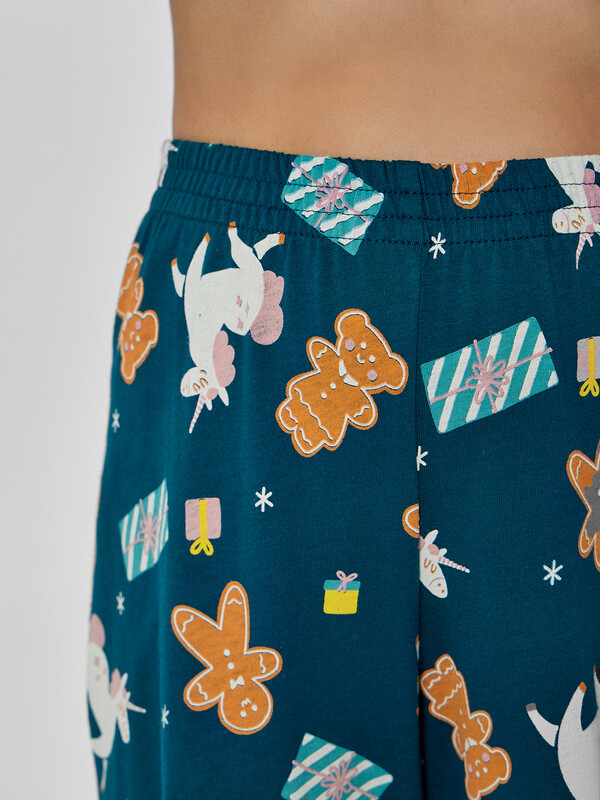 Низ джемпера и брюк обработан на 2-х игольной плоскошовной машине швом в подгибку