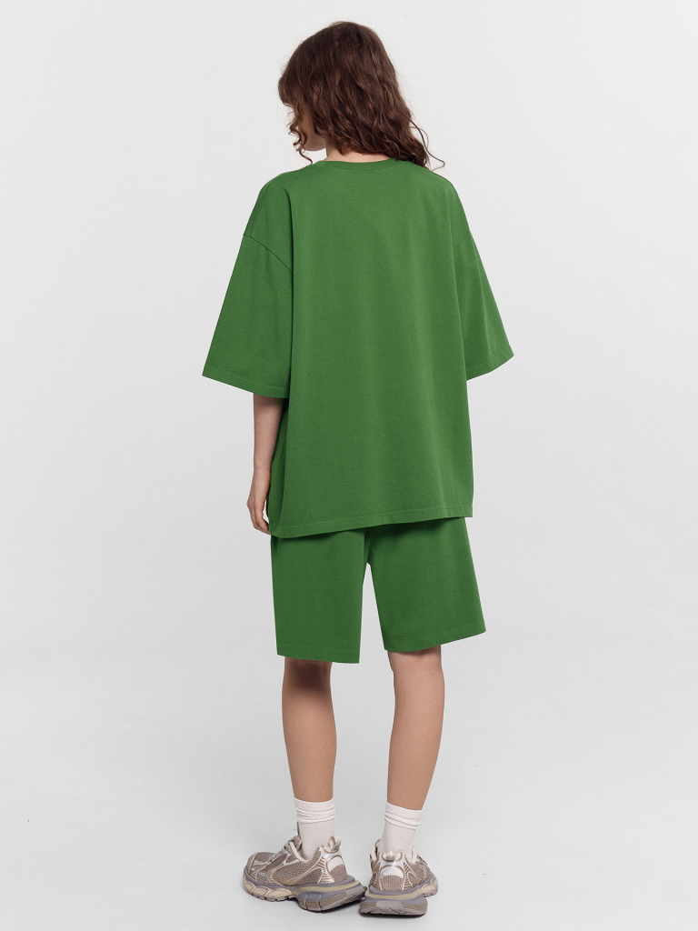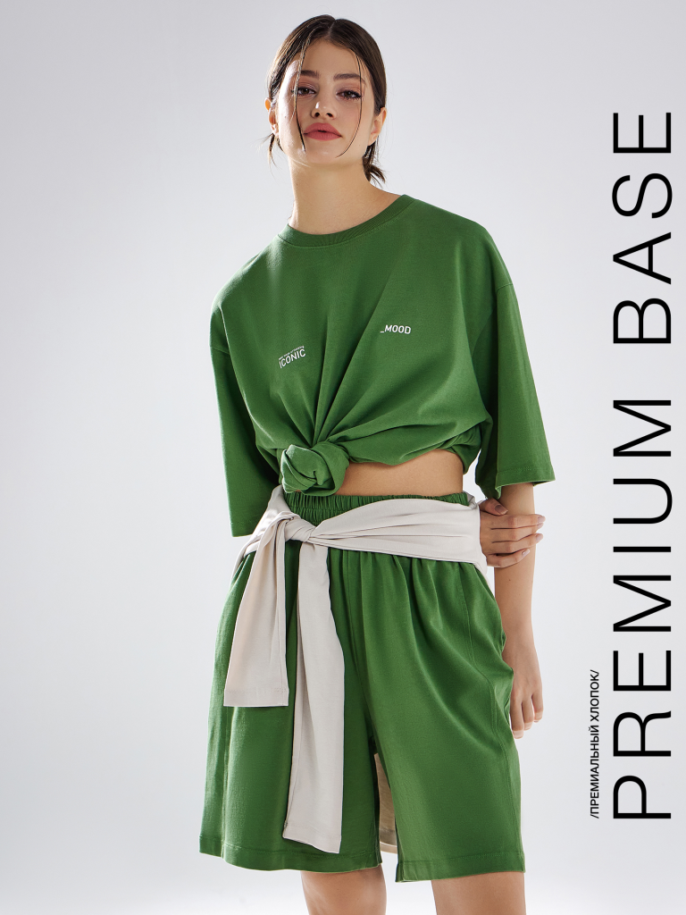 Комплект женский из коллекции Premium Base — это настоящий баланс стиля, качества и комфорта. Футболка свободного оверсайз силуэта подчеркивает непринужденность и современность, создавая элегантный и уютный образ. Горловина круглой формы, обработанная обтачкой из рибаны, придает изделию аккуратность и завершенность, а короткие рукава делают футболку универсальной для различных погодных условий. Нижние срезы футболки и шорт обработаны швом вподгибку, что обеспечивает долговечность и ухоженный вид изделия. Шорты с высокой посадкой и прямым свободным кроем создают комфорт и непринужденность движений. Эластичный пояс гарантирует идеальную посадку, а боковые карманы добавляют функциональности и практичности. Изготовленный из высококачественной хлопковой кулирки, комплект отличается мягкостью, воздухопроницаемостью и долгим сроком службы. Это превосходный выбор для создания повседневных стильных ансамблей, где каждая деталь продумана до совершенства. Рекомендуем!