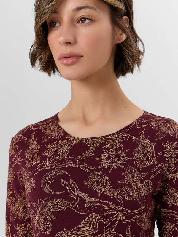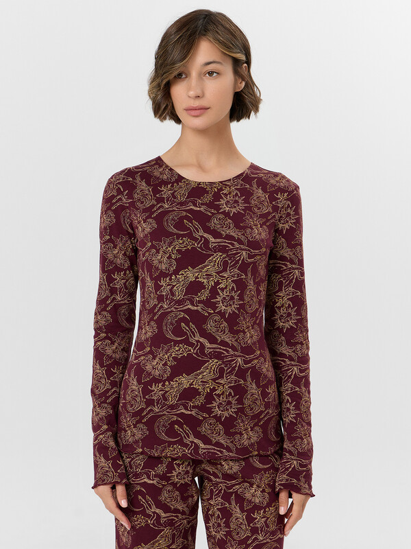 Особое внимание уделено деталям: края рукавов и подол аккуратно обработаны прочной двойной строчкой. Такая обработка гарантирует, что швы останутся гладкими и эластичными даже после многих стирок.