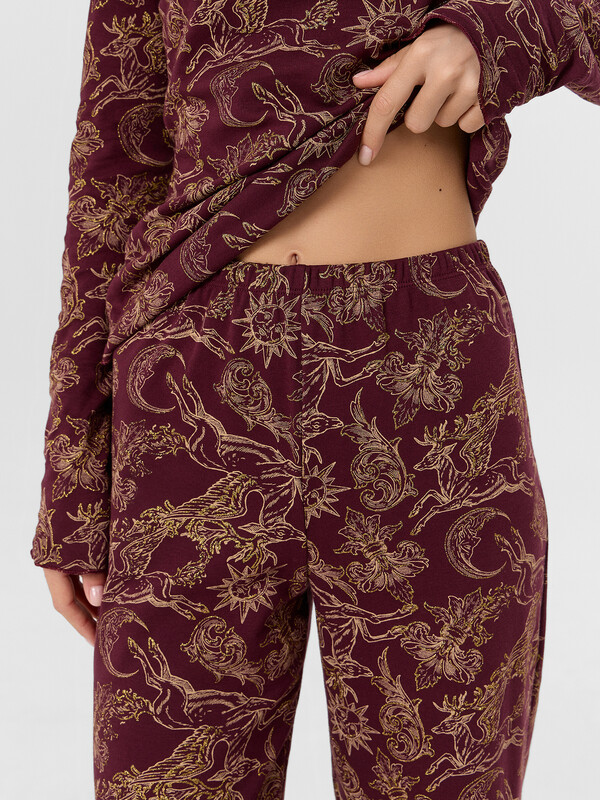 Брюки с широким поясом на мягкой резинке— воплощение домашнего уюта. Эластичная лента внутри пояса бережно фиксирует изделие, не оставляя следов на коже, а низ брючин тщательно прошит надежной строчкой, которая сохраняет идеальную форму.
