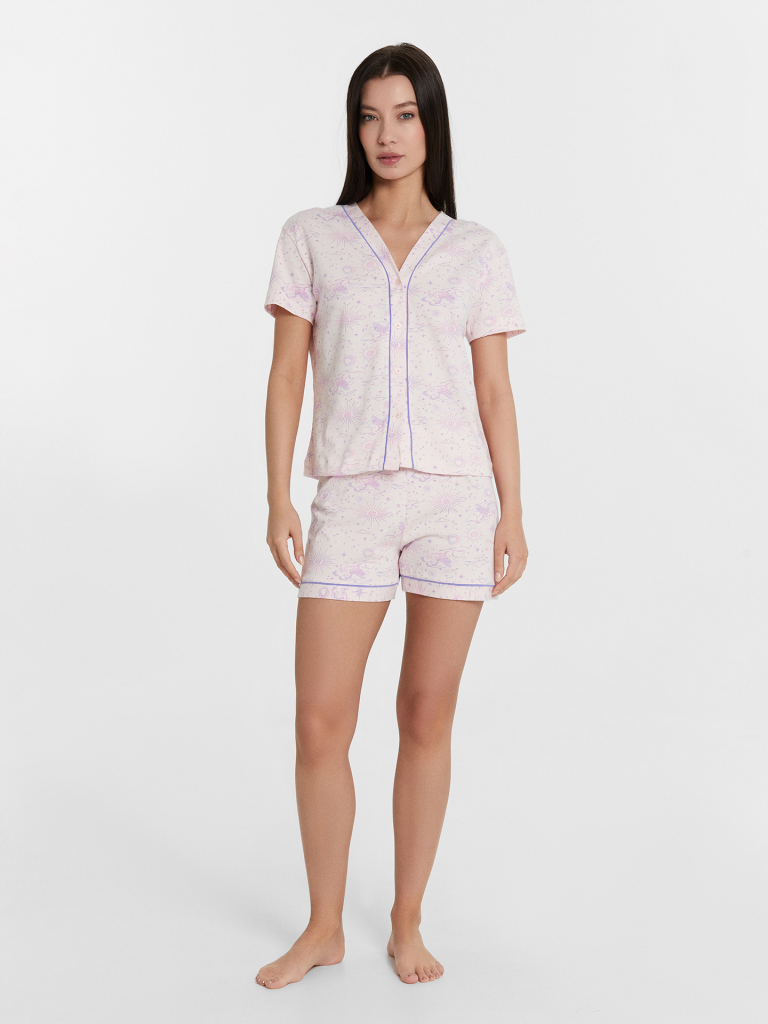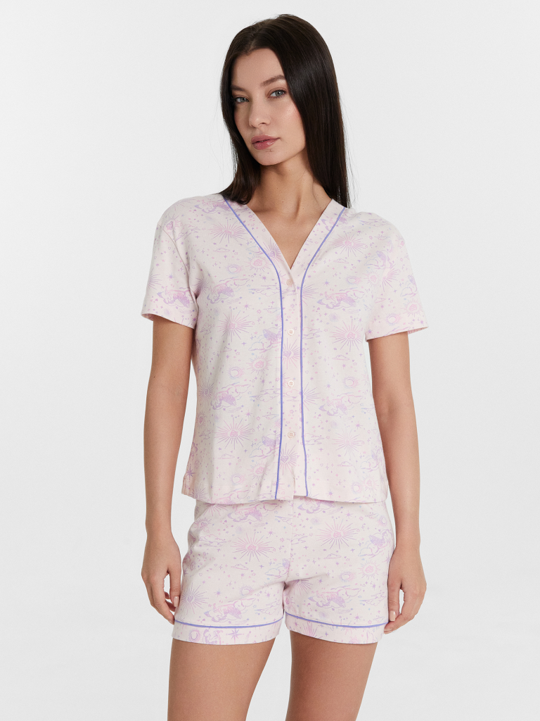 Комфортная пижама женская в "костюмном стиле" из высококачественного хлопка для приятных снов и домашних дел. Рубашка прямая, с отложным воротником, короткими рукавами, застегивается на пуговицы. Дополняют ее свободные шорты длины мини, с резиновой тесьмой в поясе. В пижаме абсолютно не жарко, комфортный материал не сковывает движений. Красивая и интересная модель на каждый день. В линейке много интересных расцветок, широкий размерный ряд, есть актуальные варианты для девушек с пышными формами plus-size. Лучший выбор домашней одежды на каждый день от Mark Formelle. Рекомендуем!
