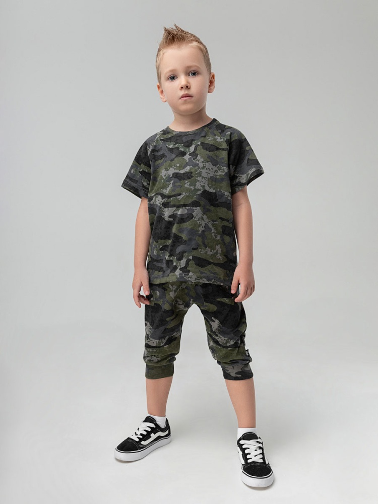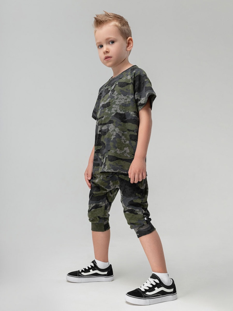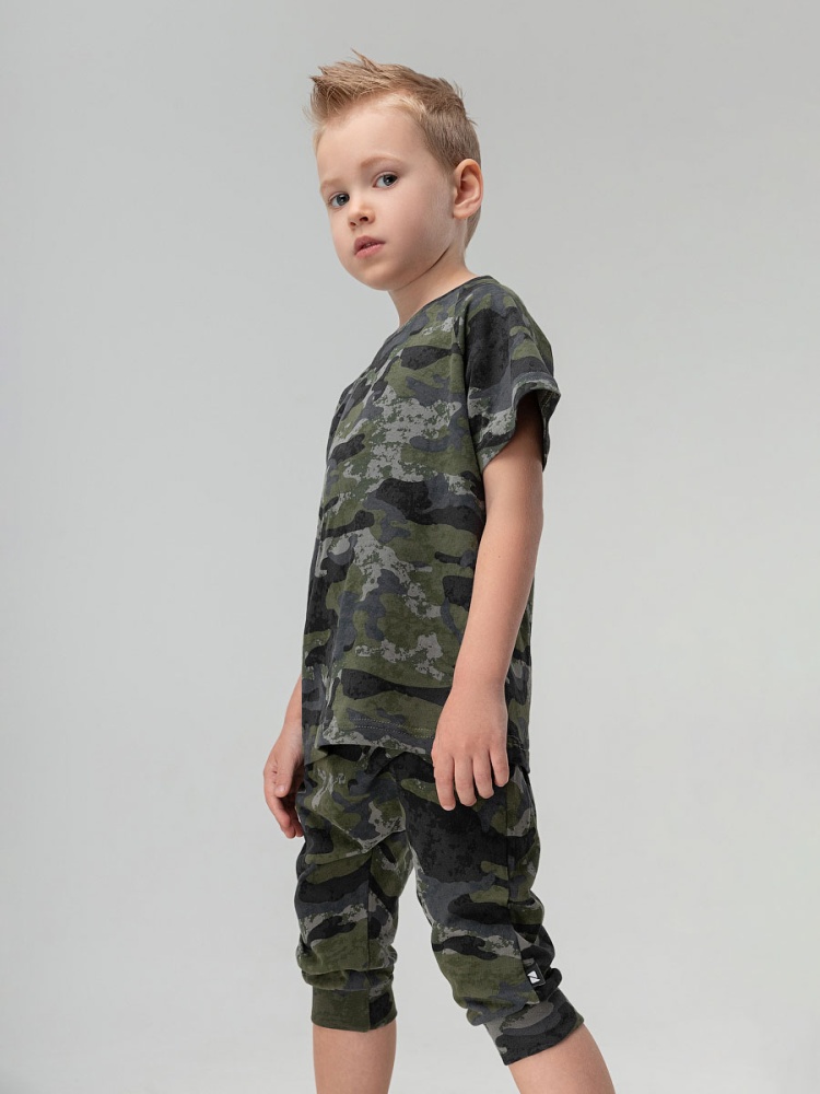 Костюм детский. Бриджи, детали: свободный покрой, пояс - эластичная резинка. Футболка, детали: короткие рукава, полуприлегающий покрой, округлый вырез горловины. Состав: кулирная гладь 100% хлопок