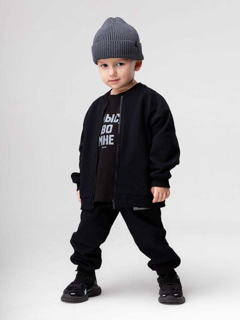 Костюм для детей ясельного возраста. Толстовка прямого силуэта свободная с центральной бортовой застёжкой на тесьму-молния, рукавом реглан, с притачной манжетой. Толстовка с поясом по низу изделия. Горловина округлой формы, оформлена рибаной. Брюки прямые на притачном поясе с внутренней резинкой. Брюки с манжетой.
