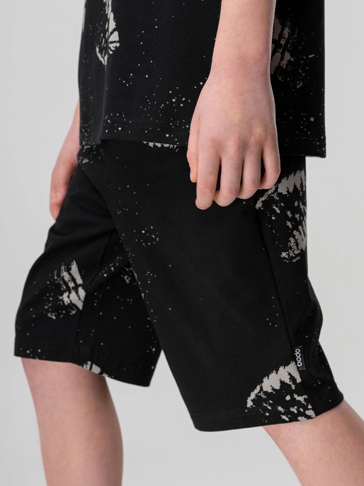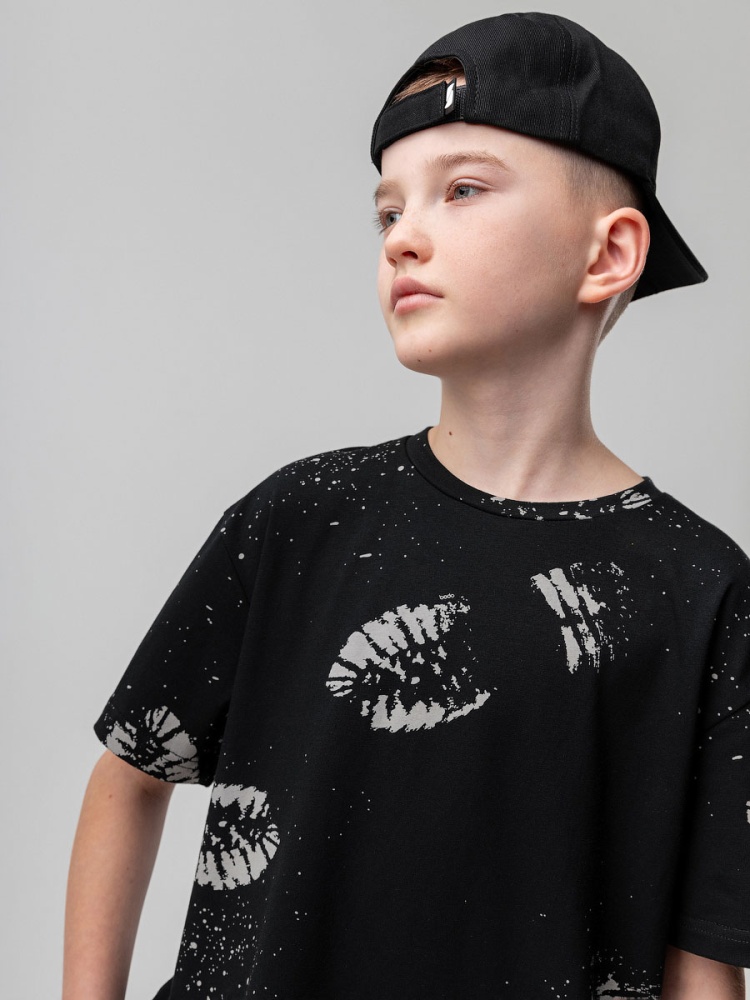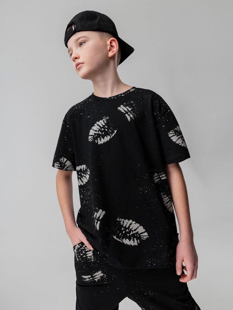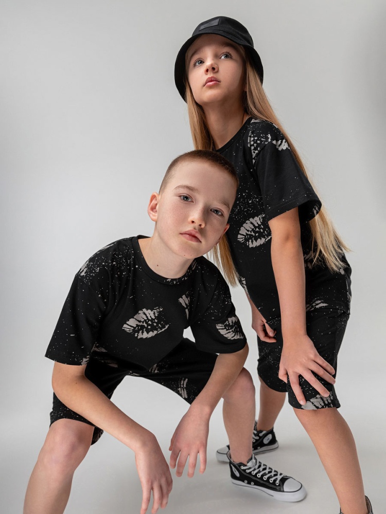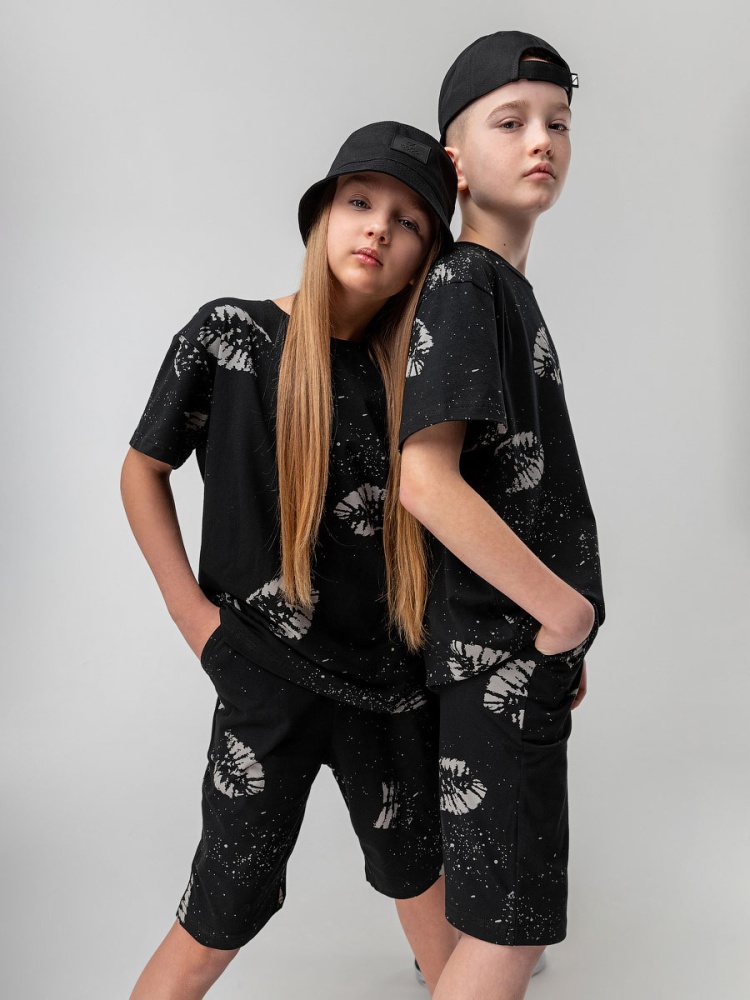 Футболка для детей школьного возраста. Футболка свободного силуэта с втачным коротким рукавом. Горловина футболки округлой формы. Низ изделия прямой.Шорты прямые свободные на притачном поясе с внутренней резинкой. Шорты с боковыми карманами.