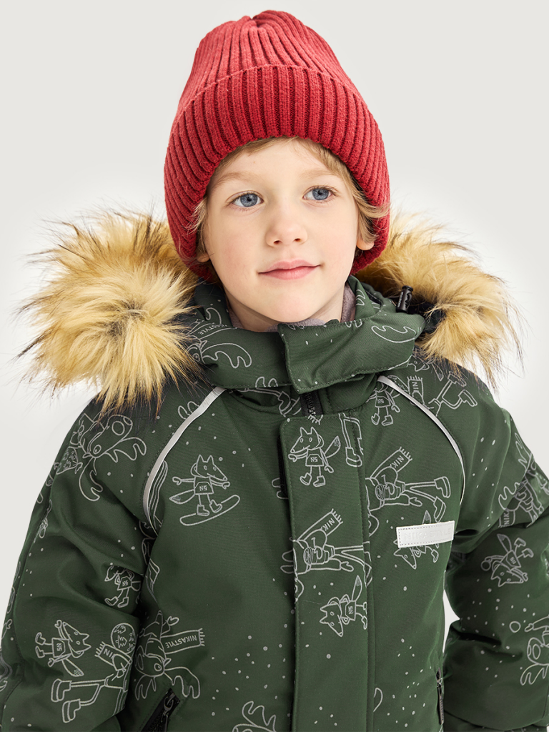 Костюм из мембранной ткани 5000/5000 с водо- грязеотталкивающей технологией TEFLON. Мембранная ткань это не продуваемый и водонепроницаемый материал, который надежно защищает от ветра и влаги. Благодаря дышащим свойствам мембраны ребенку будет комфортно в любую погоду и он не вспотеет. Дополнительно на ткань нанесен светоотражающий принт. Ткань обработана снаружи экологически чистым протектором TEFLON для защиты от воды и грязи.