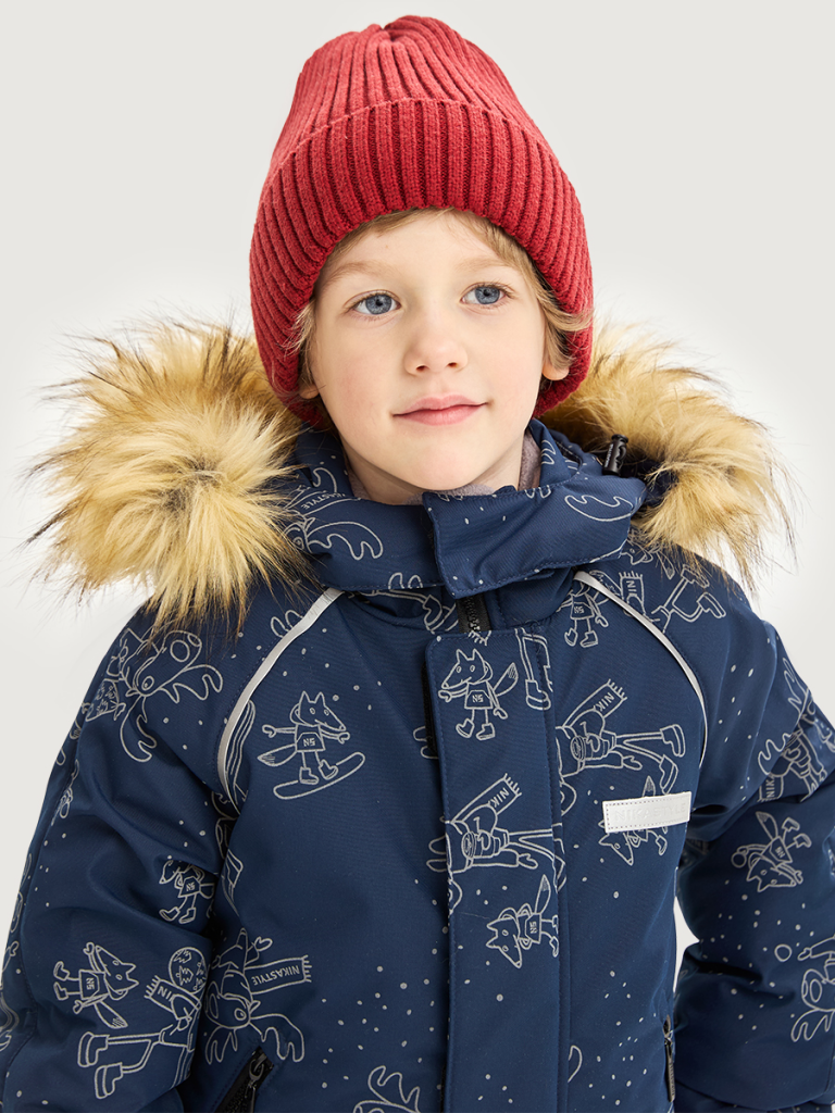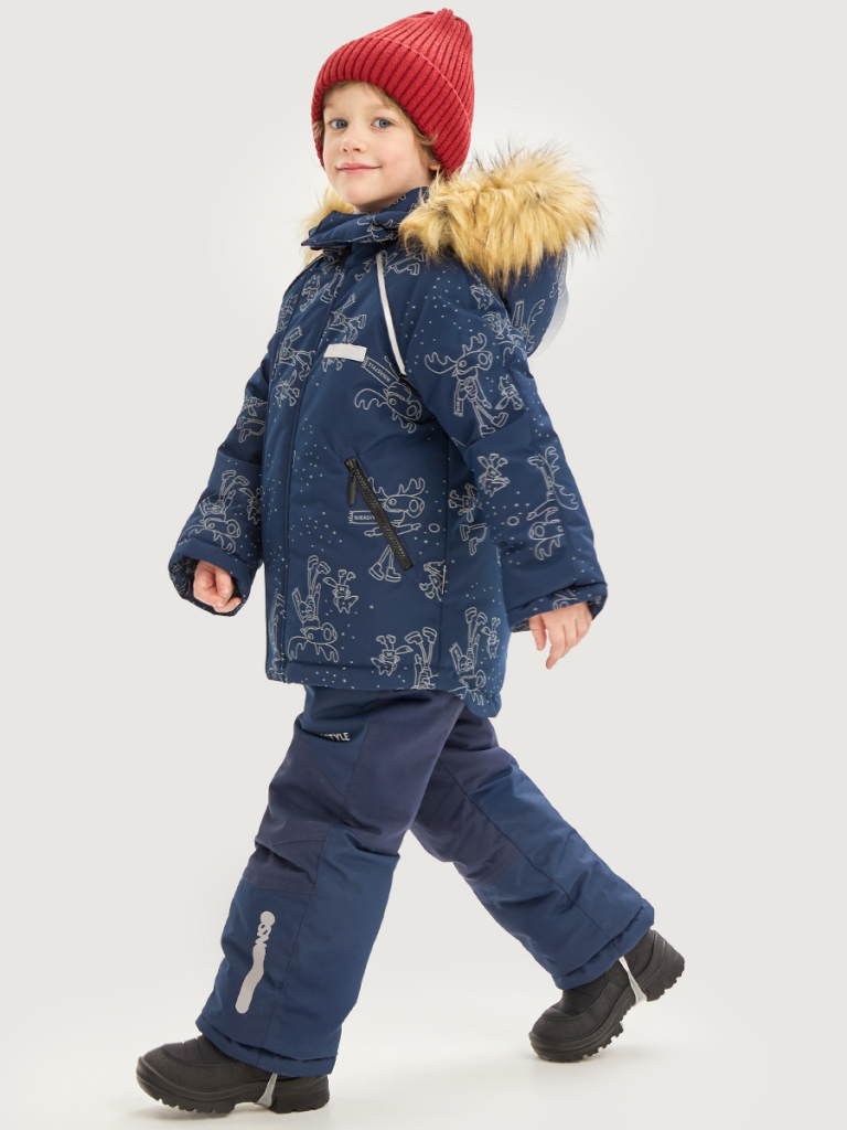 Костюм из мембранной ткани 5000/5000 с водо- грязеотталкивающей технологией TEFLON. Мембранная ткань это не продуваемый и водонепроницаемый материал, который надежно защищает от ветра и влаги. Благодаря дышащим свойствам мембраны ребенку будет комфортно в любую погоду и он не вспотеет. Дополнительно на ткань нанесен светоотражающий принт. Ткань обработана снаружи экологически чистым протектором TEFLON для защиты от воды и грязи.