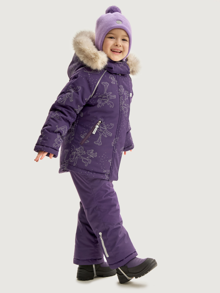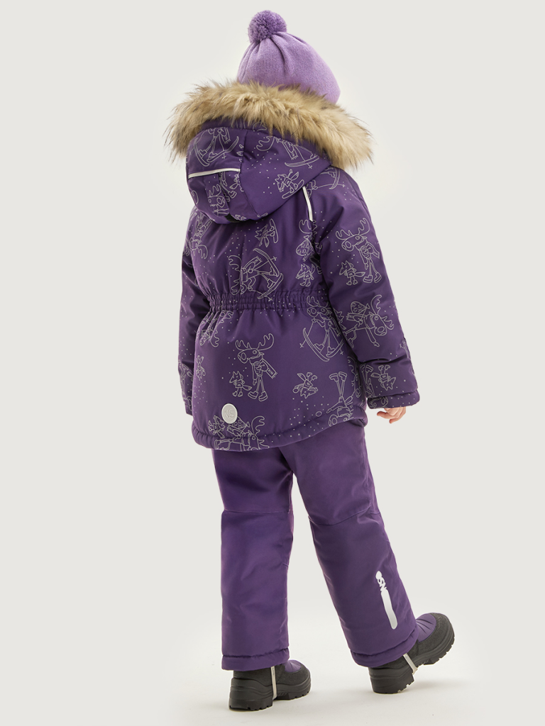Костюм ДРУЗЬЯ с системой роста на один размер (длина рукавов и брючин увеличивается на 4-5см). Костюм из мембранной ткани 5000/5000 с водо- грязеотталкивающей технологией TEFLON. Мембранная ткань это не продуваемый и водонепроницаемый материал, который надежно защищает от ветра и влаги. Благодаря дышащим свойствам мембраны ребенку будет комфортно в любую погоду и он не вспотеет. Дополнительно на ткань нанесен светоотражающий принт. Ткань обработана снаружи экологически чистым протектором TEFLON для защиты от воды и грязи.