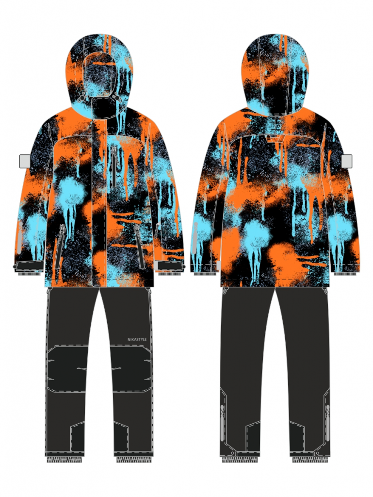 Костюм ГРАФФИТИ из мембранной ткани 5000/5000 с водо-грязеотталкивающей технологией TEFLON. Мембранная ткань это не продуваемый и водонепроницаемый материал, который надежно защищает от ветра и влаги. Благодаря дышащим свойствам мембраны ребенку будет комфортно в любую погоду, и он не вспотеет. Ткань обработана снаружи экологически чистым протектором TEFLON для защиты от воды и грязи.