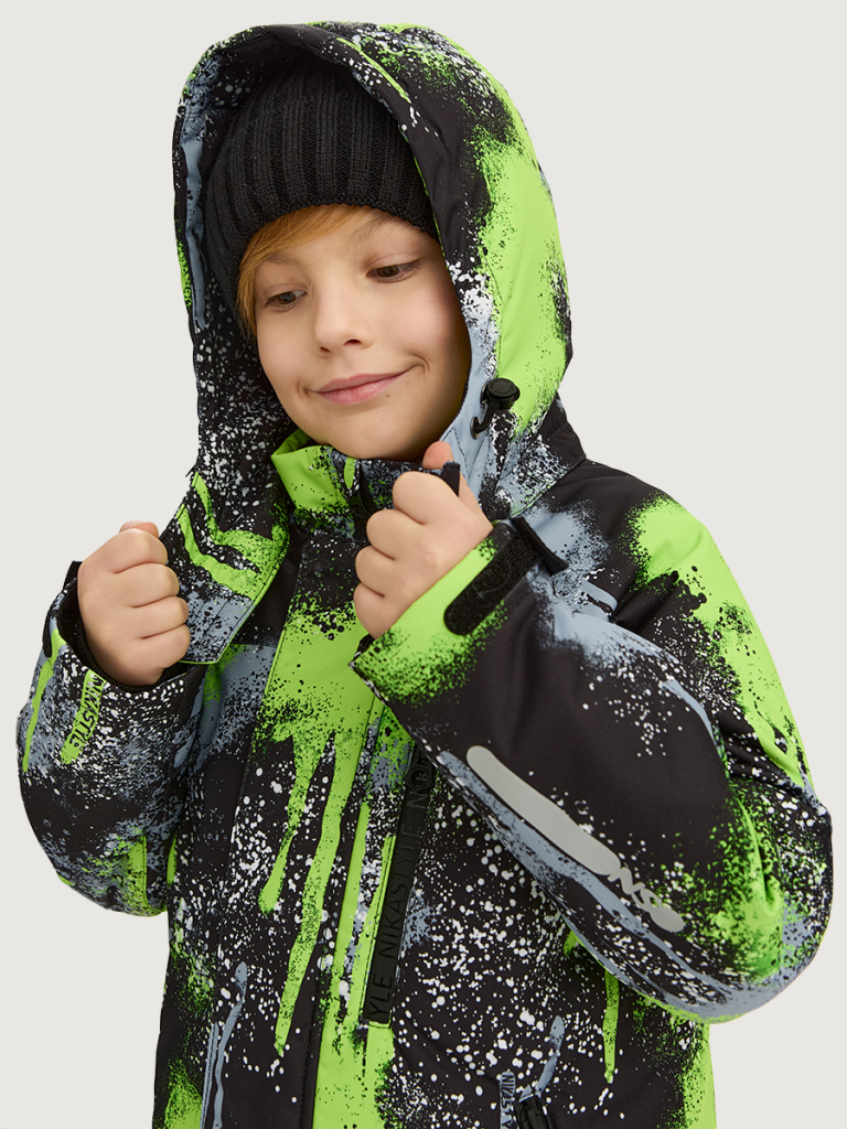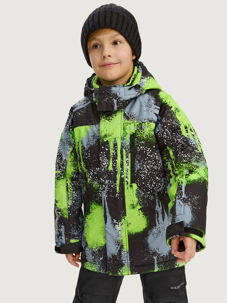 Костюм ГРАФФИТИ из мембранной ткани 5000/5000 с водо-грязеотталкивающей технологией TEFLON. Мембранная ткань это не продуваемый и водонепроницаемый материал, который надежно защищает от ветра и влаги. Благодаря дышащим свойствам мембраны ребенку будет комфортно в любую погоду, и он не вспотеет. Ткань обработана снаружи экологически чистым протектором TEFLON для защиты от воды и грязи.