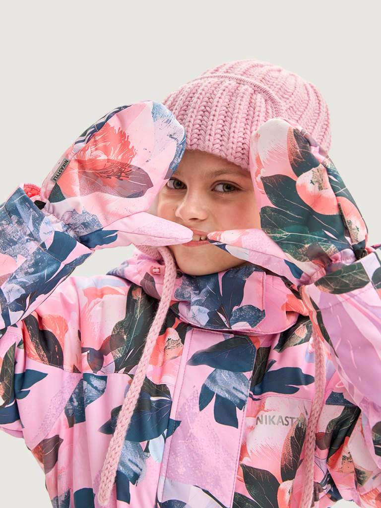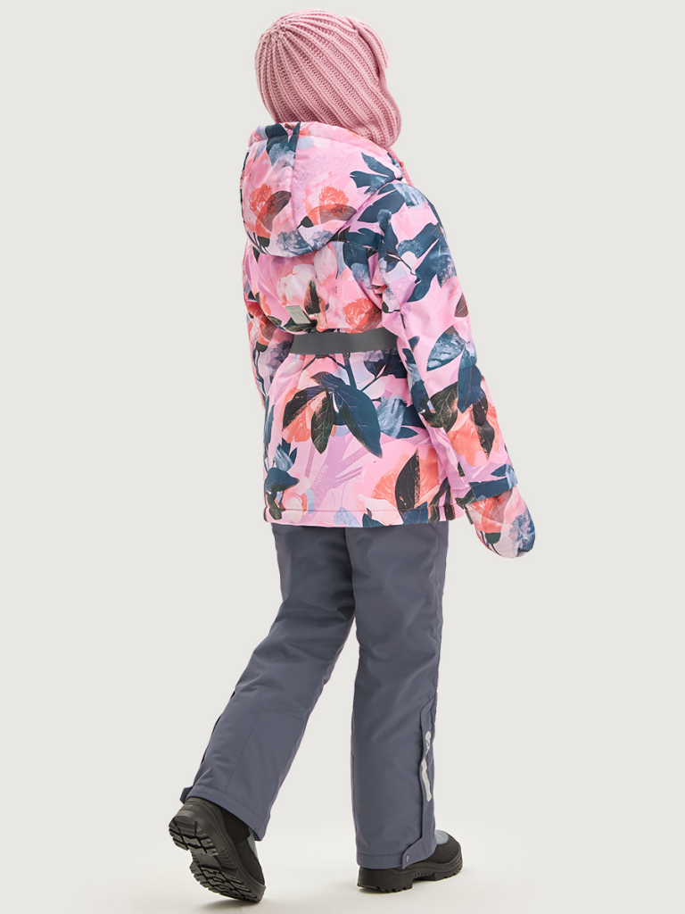 Костюм САКУРА с системой роста на один размер (длина рукавов и брючин увеличивается на 4-5см). Костюм из мембранной ткани 5000/5000 с водо-грязеотталкивающей технологией TEFLON. Мембранная ткань это не продуваемый и водонепроницаемый материал, который надежно защищает от ветра и влаги. Благодаря дышащим свойствам мембраны ребенку будет комфортно в любую погоду, и он не вспотеет. Ткань обработана снаружи экологически чистым протектором TEFLON для защиты от воды и грязи.