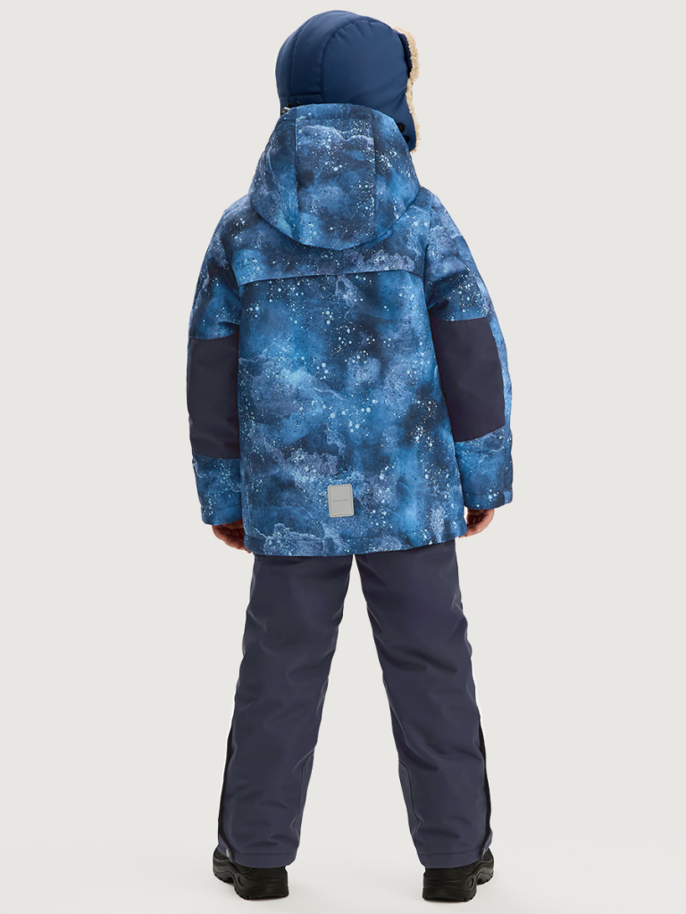 Костюм из мембранной ткани 5000/5000 с водо-грязеотталкивающей технологией TEFLON. Мембранная ткань это не продуваемый и водонепроницаемый материал, который надежно защищает от ветра и влаги. Благодаря дышащим свойствам мембраны ребенку будет комфортно в любую погоду, и он не вспотеет. Дополнительно на ткань нанесен светоотражающий принт. Ткань обработана снаружи экологически чистым протектором TEFLON для защиты от воды и грязи.