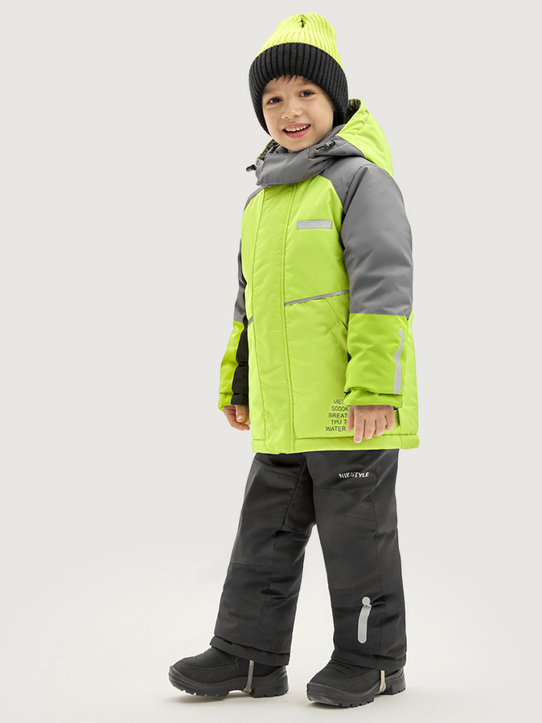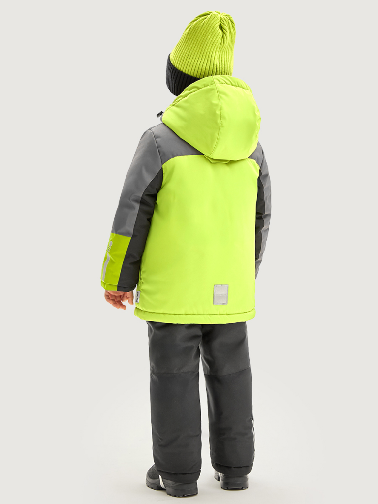 Мембранная ткань это не продуваемый и водонепроницаемый материал, который надежно защищает от ветра и влаги. Благодаря дышащим свойствам мембраны ребенку будет комфортно в любую погоду и он не вспотеет. Ткань обработана снаружи экологически чистым протектором TEFLON для защиты от воды и грязи.