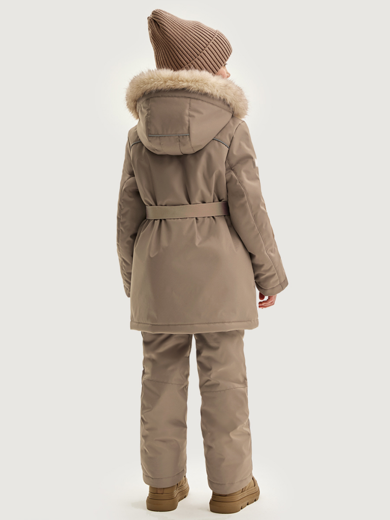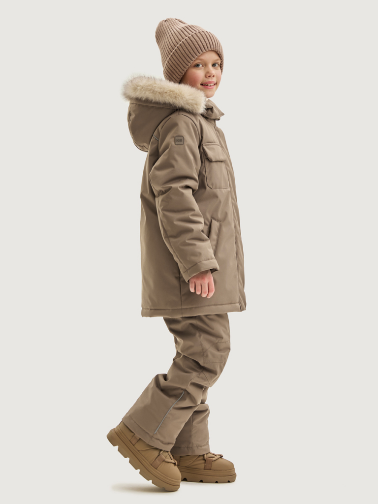 Мембранная ткань это непродуваемый и водонепроницаемый материал, который надежно защищает от ветра и влаги. Благодаря дышащим свойствам мембраны ребенку будет комфортно в любую погоду и он не вспотеет. Ткань обработана снаружи экологически чистым протектором TEFLON для защиты от воды и грязи.