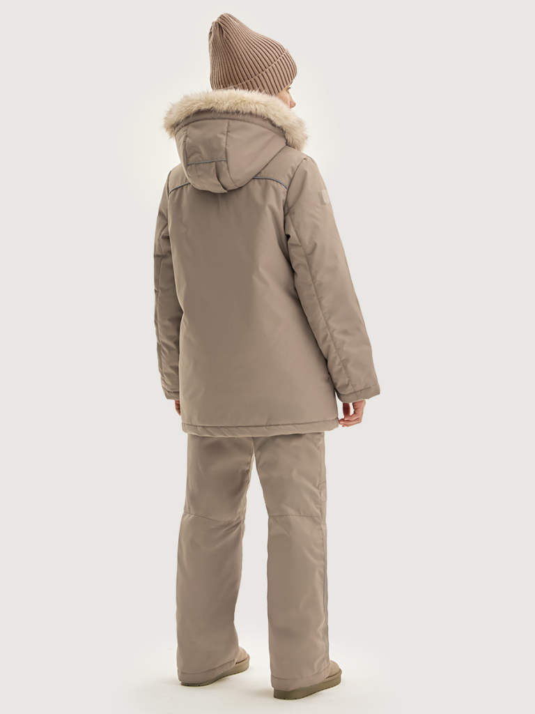 Мембранная ткань это непродуваемый и водонепроницаемый материал, который надежно защищает от ветра и влаги. Благодаря дышащим свойствам мембраны ребенку будет комфортно в любую погоду и он не вспотеет. Ткань обработана снаружи экологически чистым протектором TEFLON для защиты от воды и грязи.