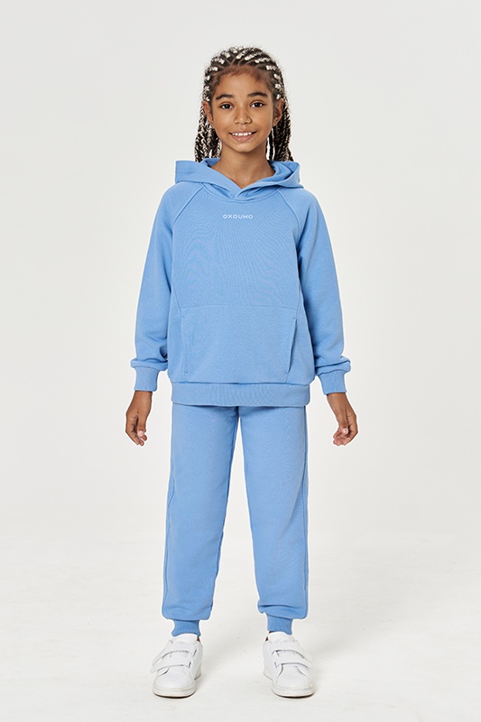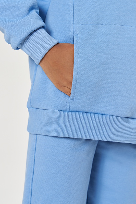 Худи с капюшоном, рукав реглан, карманы в рельефных швах. Пояс и манжеты из кашкорсе. Джоггеры с боковыми карманами. Манжеты и пояс из кашкорсе.