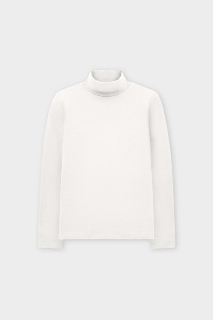 Однотонная водолазка с высоким воротником-стойкой и длинными рукавами. Выполнена из высококачественной эластичной рибаны с начёсом. Эластан в составе позволяет изделию быть более эластичным и дольше сохранять форму. Воротник защищает горло от прохладного воздуха.