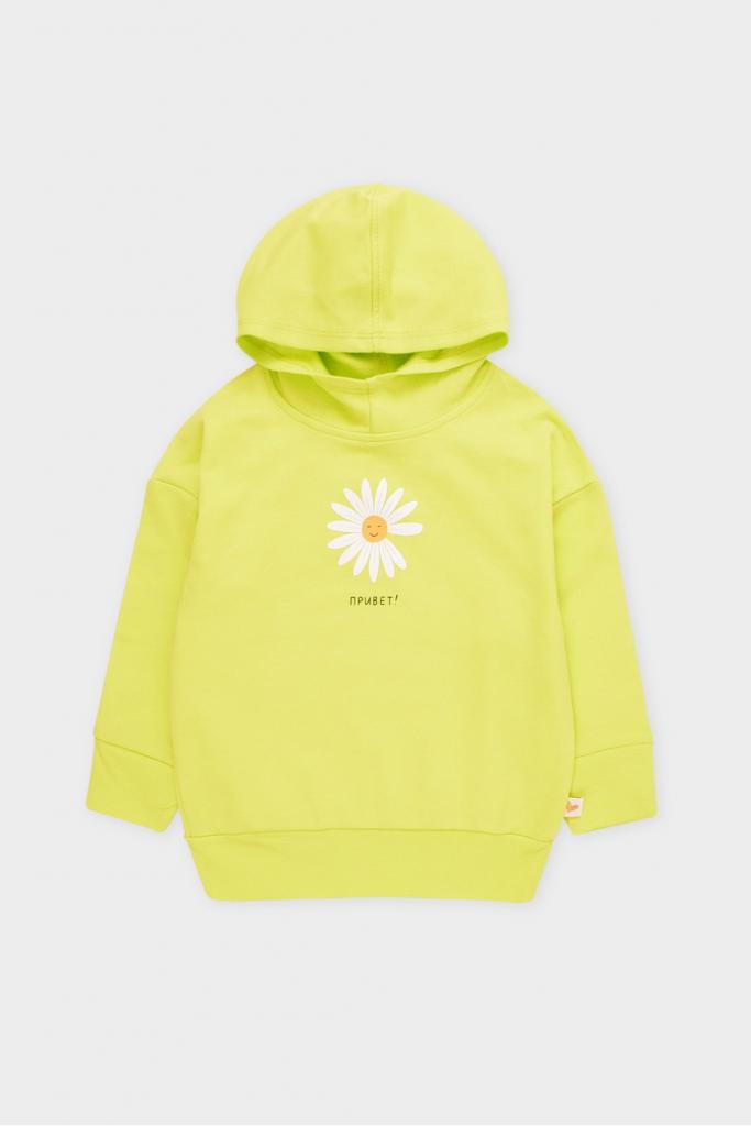 Худи с капюшоном для девочки из петельчатого футера. Принт выполнен из высококачественных текстильных красителей.