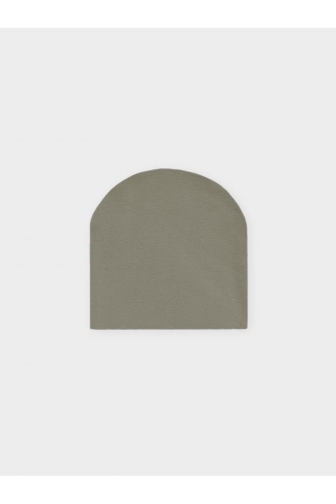 Шапочка из однотонного эластичного трикотажа, двойная. Удлиненная скругленная макушка.