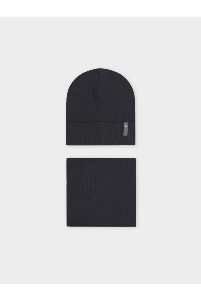Комплект детский: шапка и снуд из хлопкового трикотажа в рубчик с добавлением эластана, окрашенного стойкими гипоаллергенными текстильными красителями. Изделия хорошо тянутся, после многократных стирок сохраняют цвет и форму.