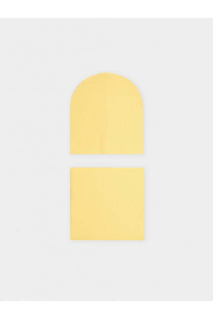 Комплект для девочки: шапка и снуд из хлопкового трикотажа в рубчик с добавлением эластана, окрашенного стойкими гипоаллергенными текстильными красителями. Изделия хорошо тянутся, после многократных стирок сохраняют цвет и форму.