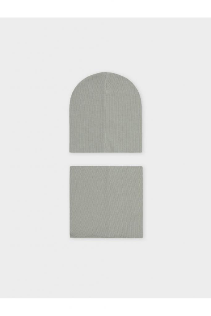 Комплект для мальчика: шапка и снуд из хлопкового трикотажа в рубчик с добавлением эластана, окрашенного стойкими гипоаллергенными текстильными красителями. Изделия хорошо тянутся, после многократных стирок сохраняют цвет и форму.