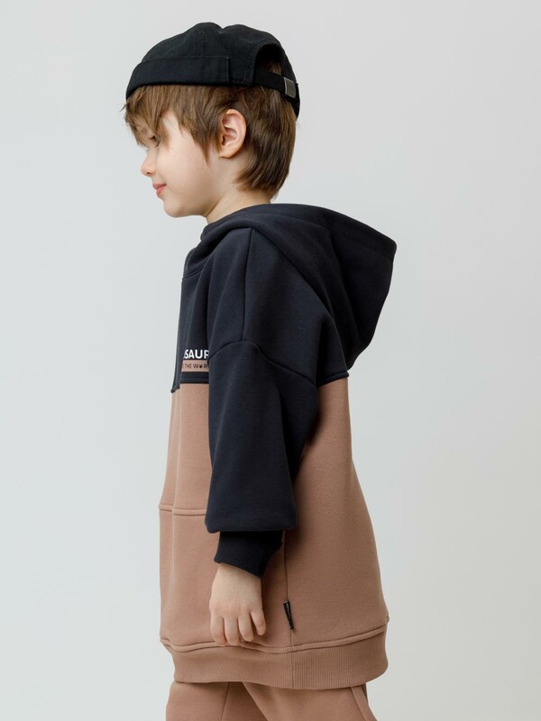 Худи с капюшоном для мальчика из тёплого футера с начёсом. Пояс и манжеты выполнены из мягкого эластичного трикотажа. Спереди карманы. Худи сохраняет форму и стойкий цвет после многочисленных стирок и идеально подходит на каждый день. Оригинальный принт выполнен из стойких текстильных гипоаллергенных красителей. Все трикотажные полотна производятся в соответствии с нормами швейцарского сертификата ЭкоТекс.
