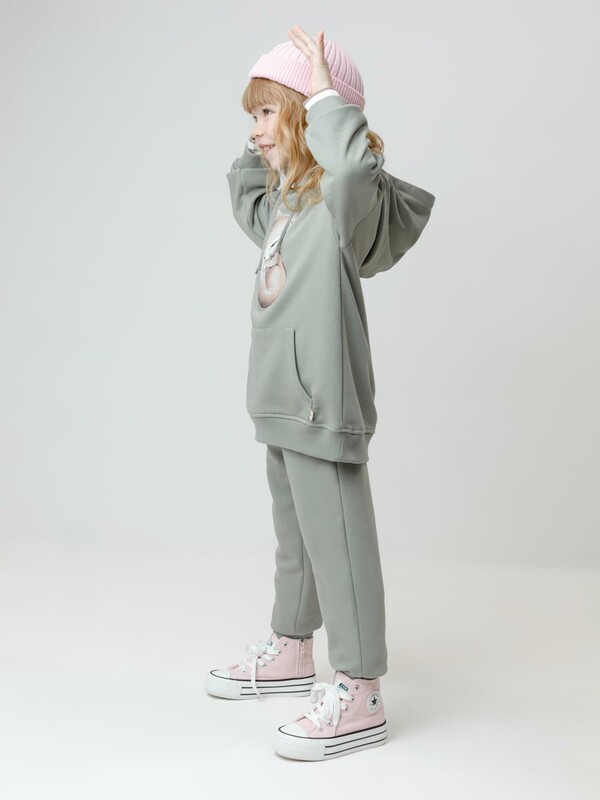 Худи с капюшоном для девочки из мягкого футера трёхнитки с начёсом. Пояс и манжеты выполнены из мягкого эластичного трикотажа. Худи сохраняет форму и стойкий цвет после многочисленных стирок и идеально подходит на каждый день. Оригинальный принт выполнен из стойких текстильных гипоаллергенных красителей. Все трикотажные полотна производятся в соответствии с нормами швейцарского сертификата ЭкоТекс.