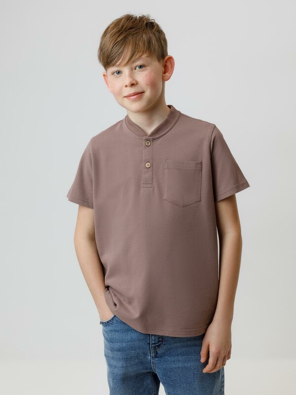 Поло для мальчика. Изготовлено из высококачественного трикотажного полотна пике. У изделия эластичный воротник и застёжка спереди на две пуговицы. На груди накладной карман. Все трикотажные полотна производятся в соответствии с нормами швейцарского сертификата ЭкоТекс.