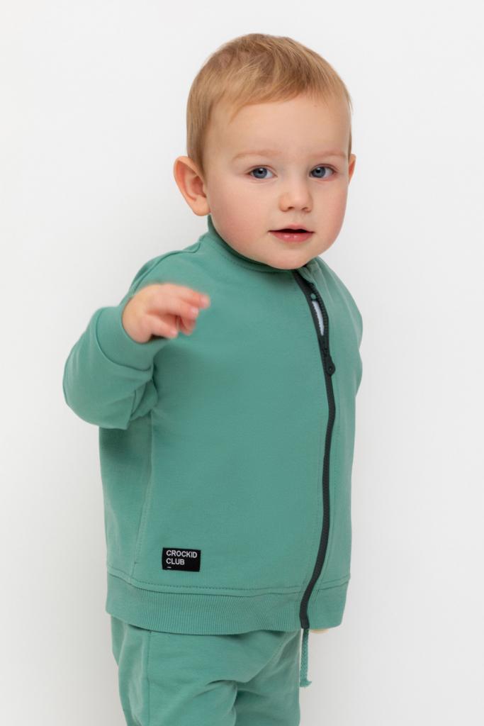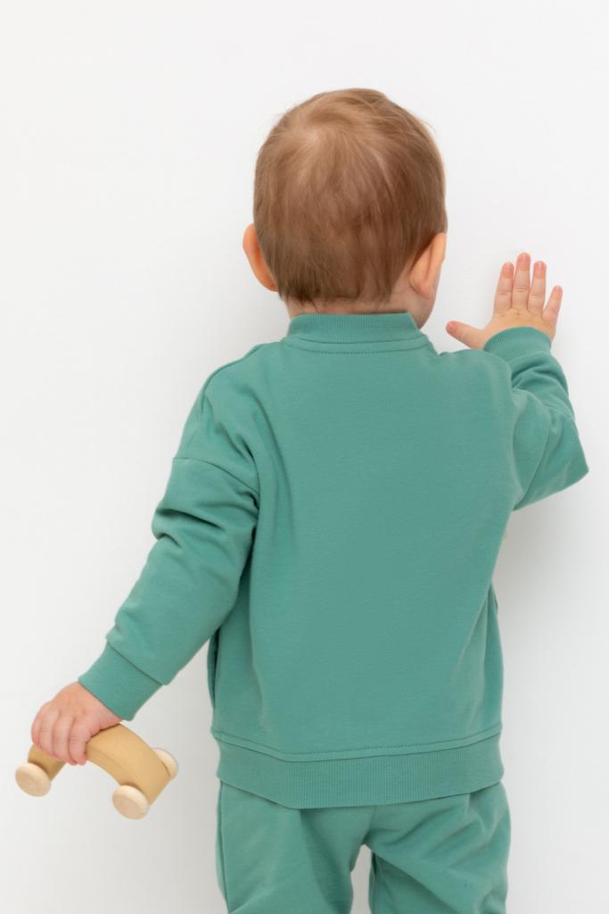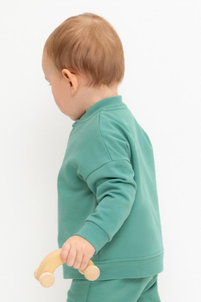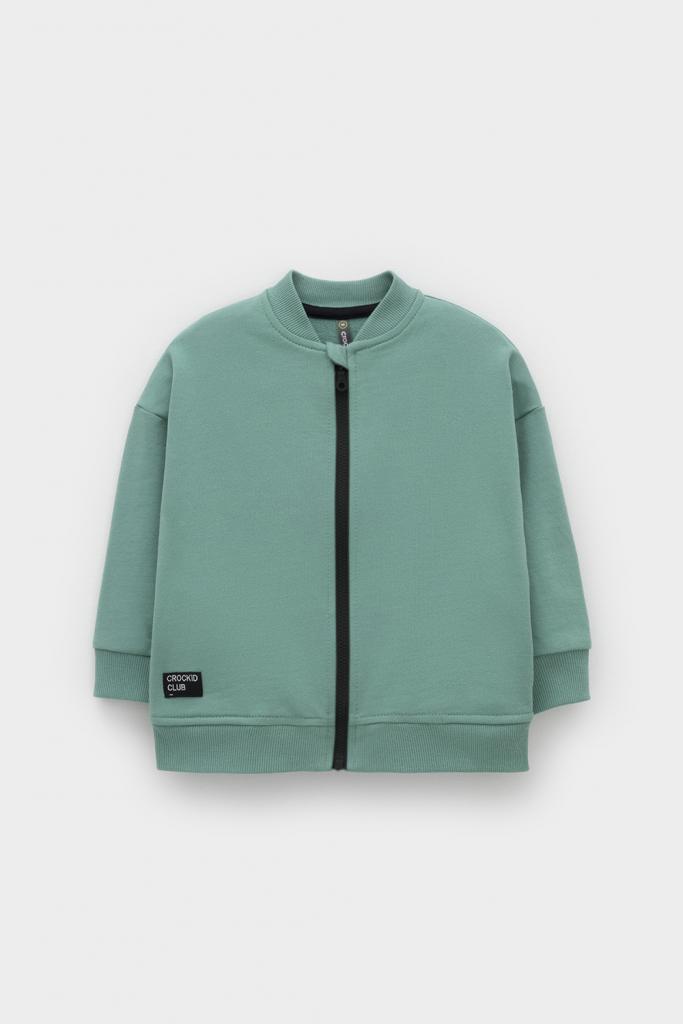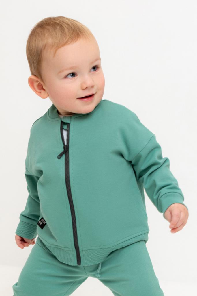 Бомбер однотонный для мальчика из мягкого трикотажа. Воротник, манжеты и пояс выполнены из эластичного трикотажа в рубчик Застёгивается на молнию. По бокам два удобных кармана.