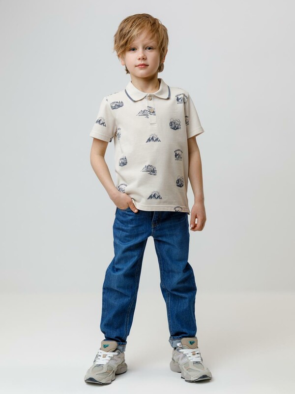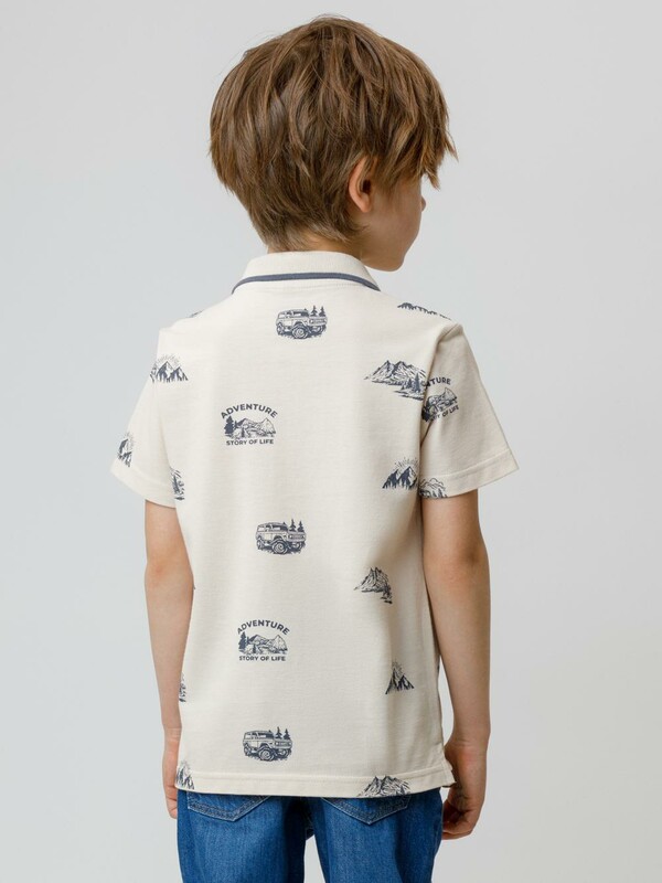 Поло для мальчика. Изготовлено из высококачественного трикотажного полотна пике. У изделия вязаный воротник и застёжка спереди на две пуговицы. Все трикотажные полотна производятся в соответствии с нормами швейцарского сертификата ЭкоТекс.