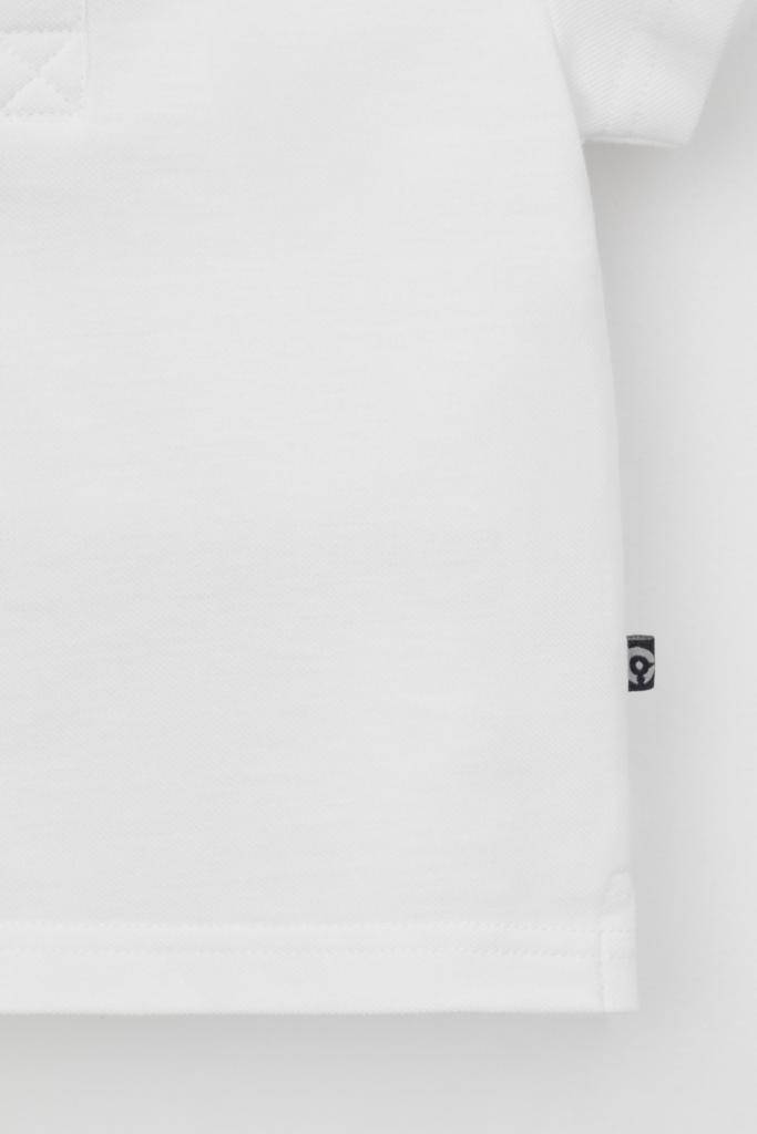 Поло для мальчика. Изготовлено из высококачественного трикотажного полотна пике. У изделия вязаный воротник и застежка спереди на две кнопки.