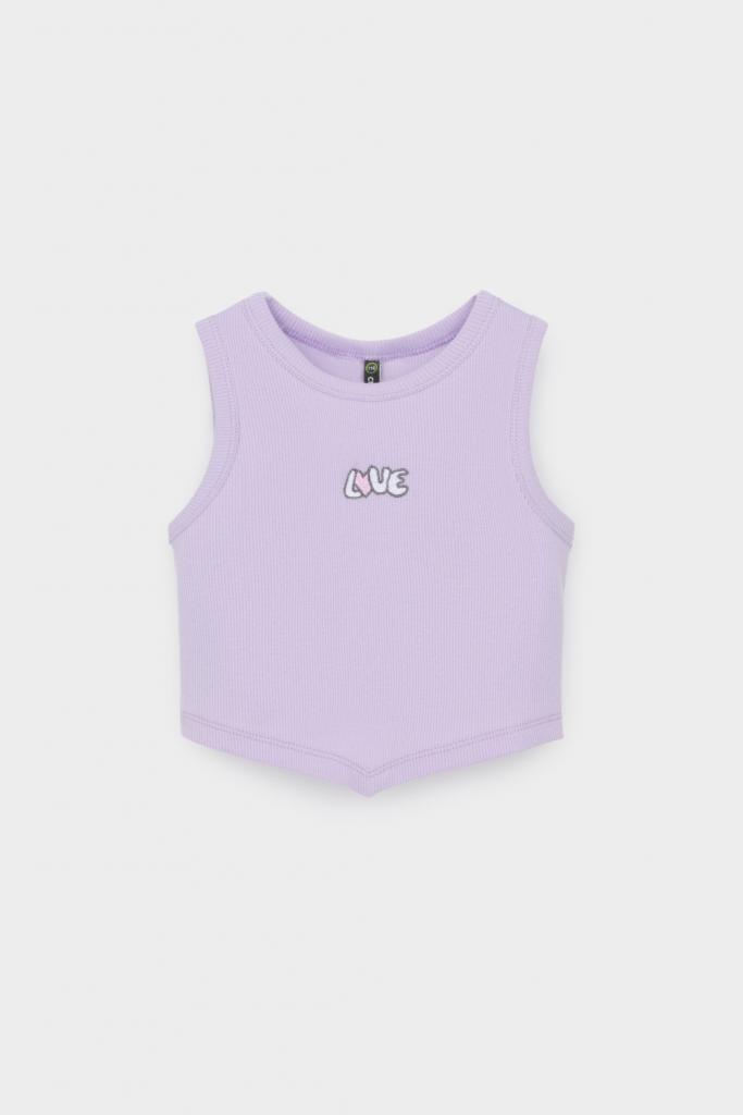 Топ с вышивкой для девочки из эластичного трикотажа в рубчик. Изделие сохраняет цвет и форму после многократных стирок.