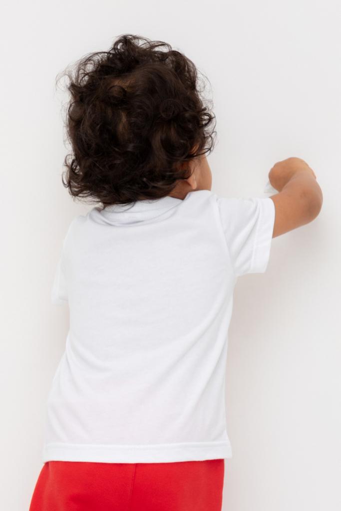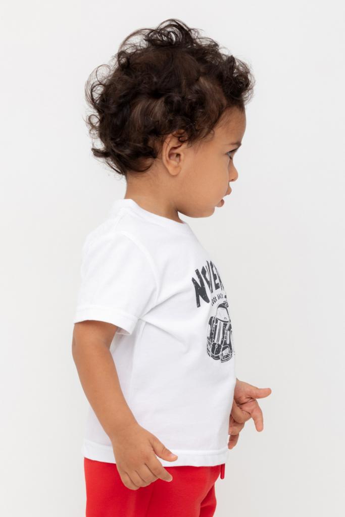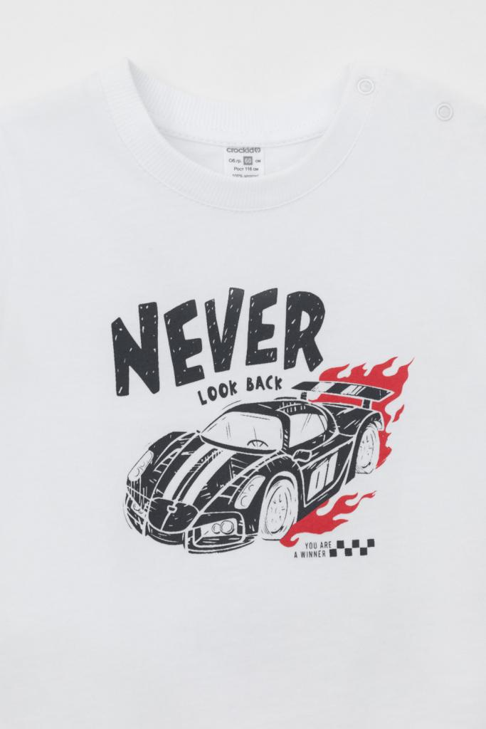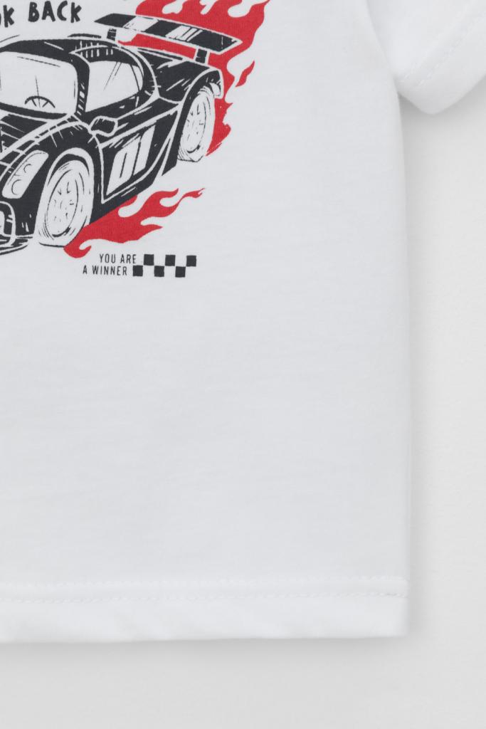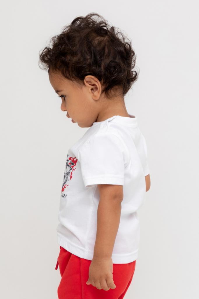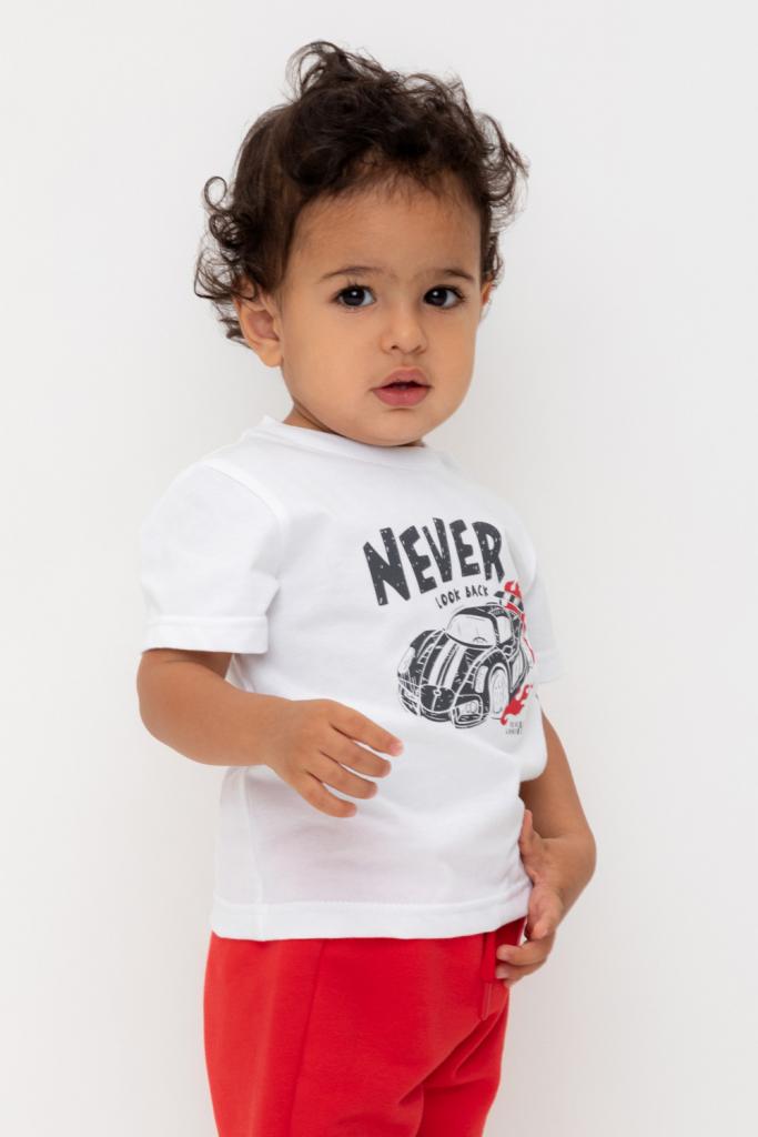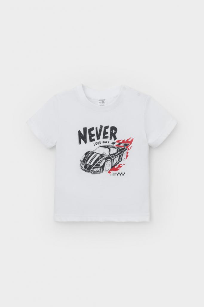 Футболка для мальчика из высококачественного трикотажного полотна. Оригинальный принт выполнен из стойких текстильных красителей. Для удобства на плече застежка на кнопки.