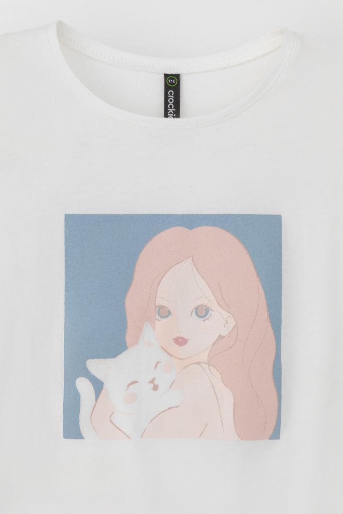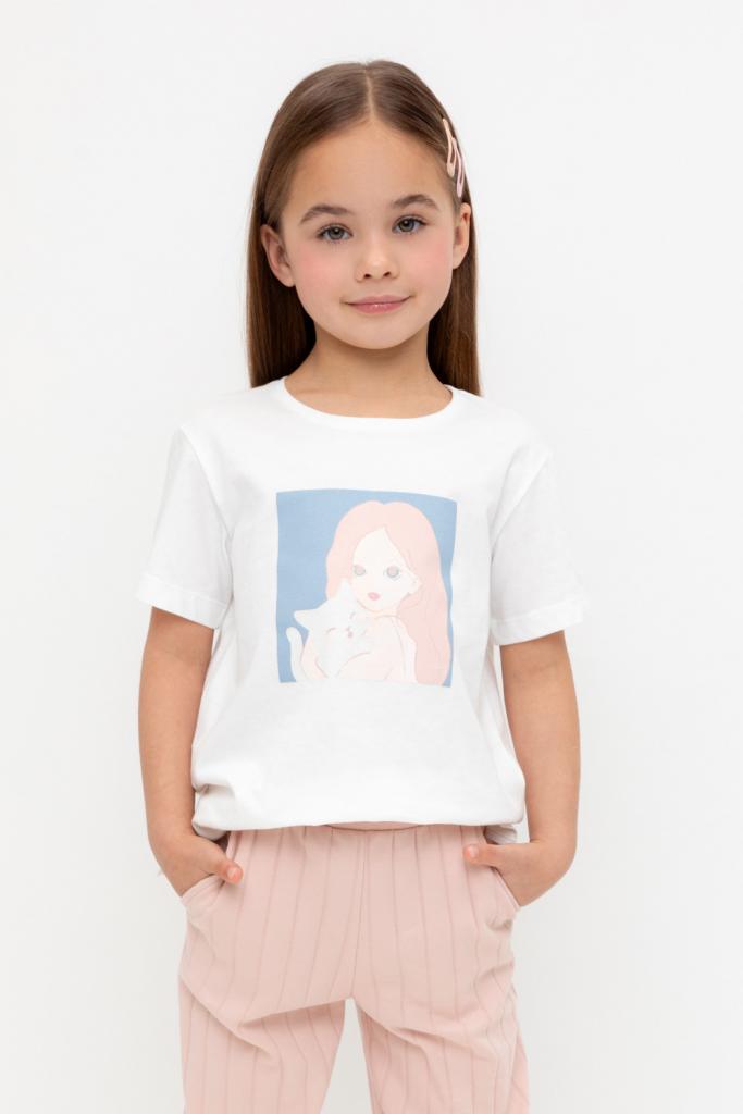Футболка для девочки из высококачественного трикотажного полотна. Оригинальный принт выполнен из стойких текстильных красителей.