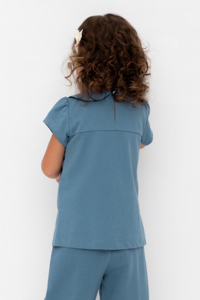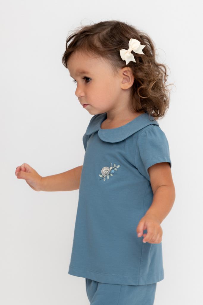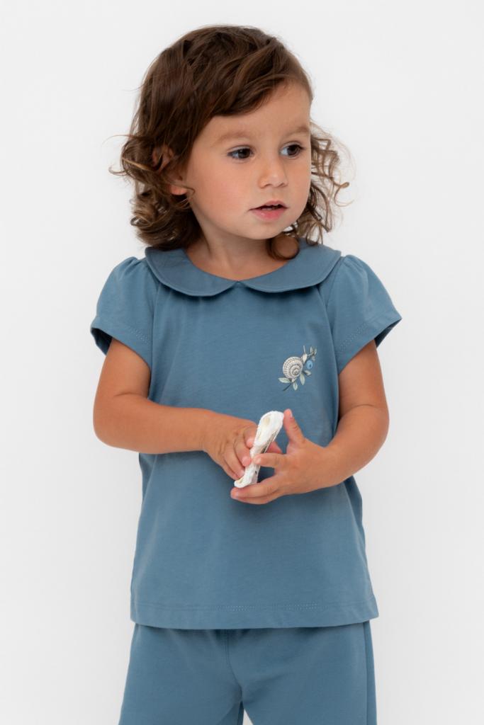 Футболка с воротничком для девочки из высококачественного трикотажного полотна. Оригинальный принт выполнен из стойких текстильных красителей.