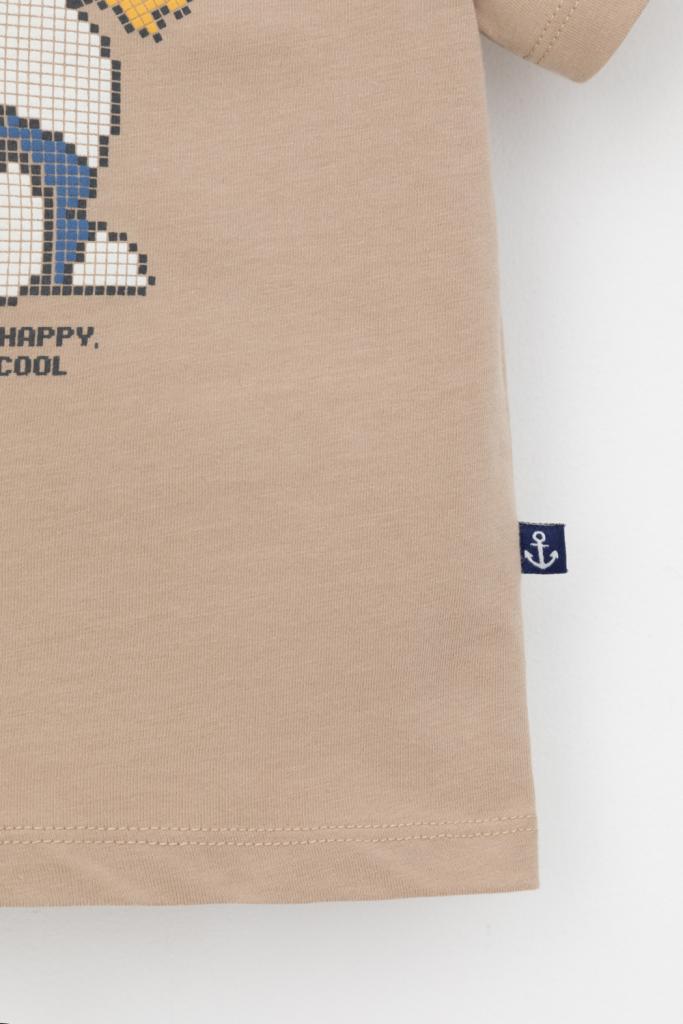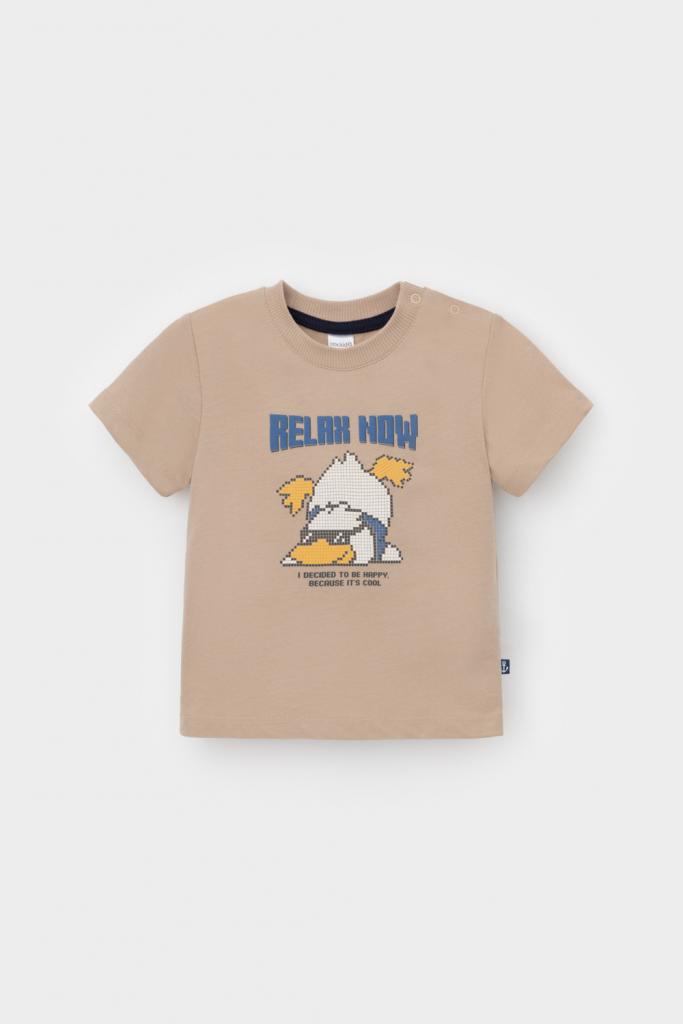 Футболка для мальчика из высококачественного трикотажного полотна. Оригинальный принт выполнен из стойких текстильных красителей. Для удобства на плече застежка на кнопки.